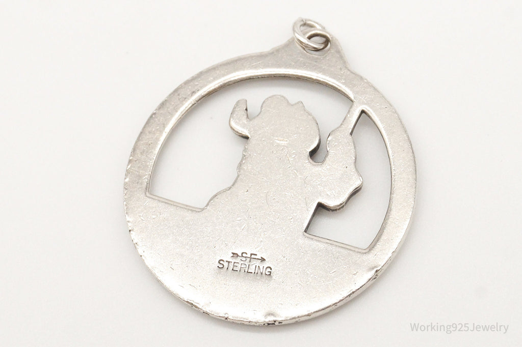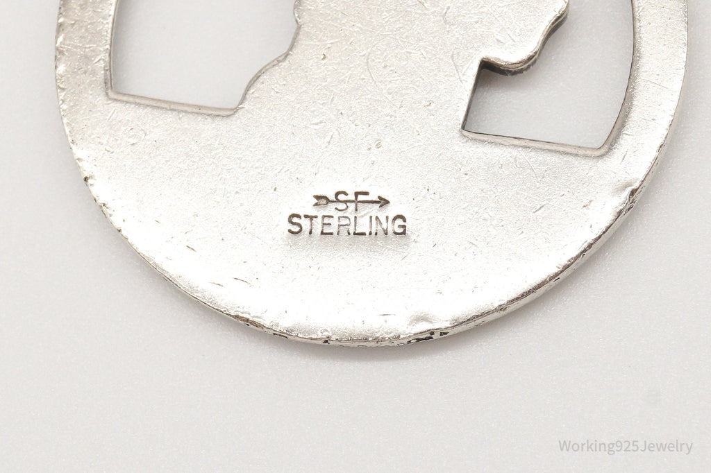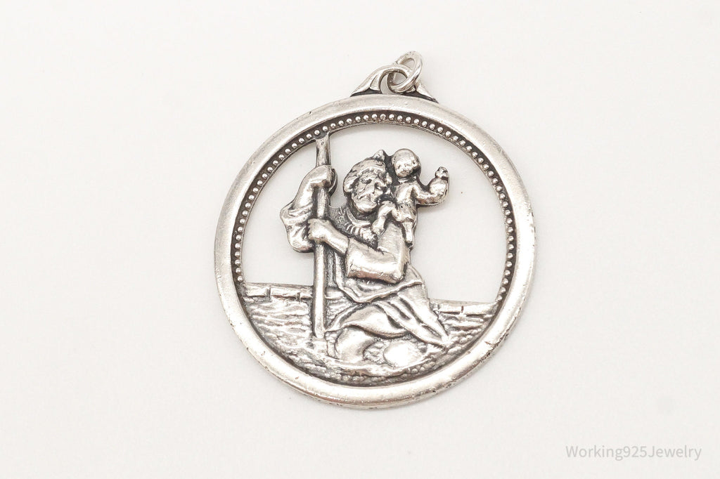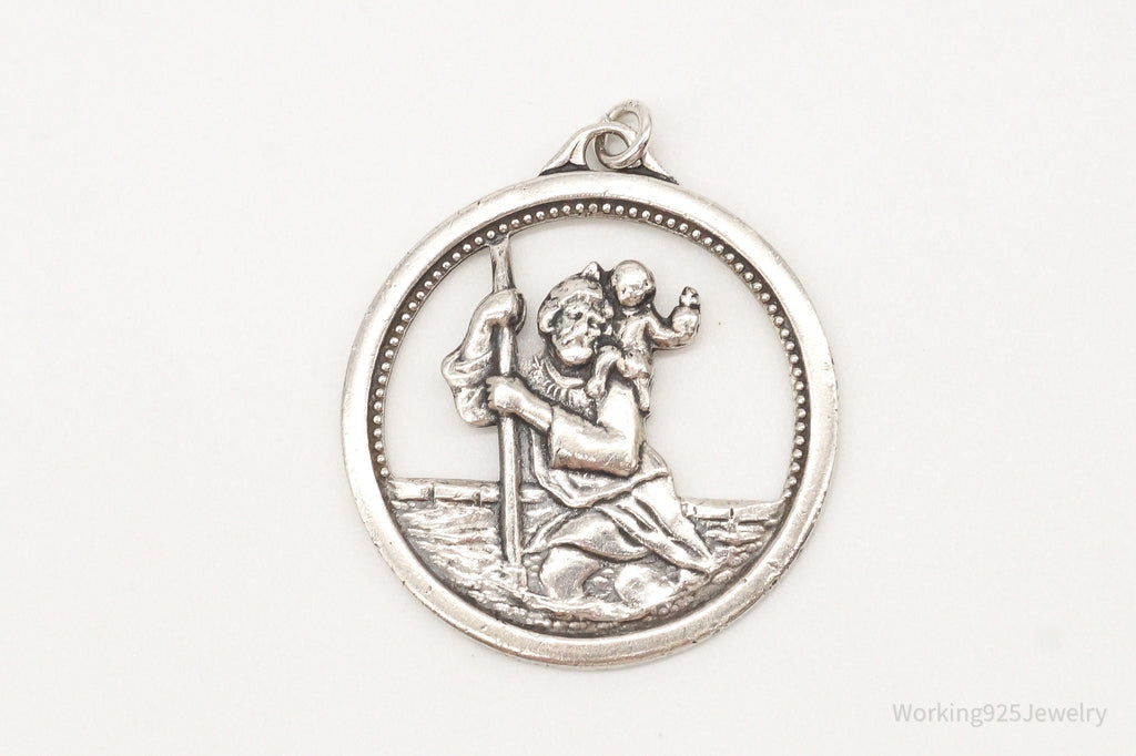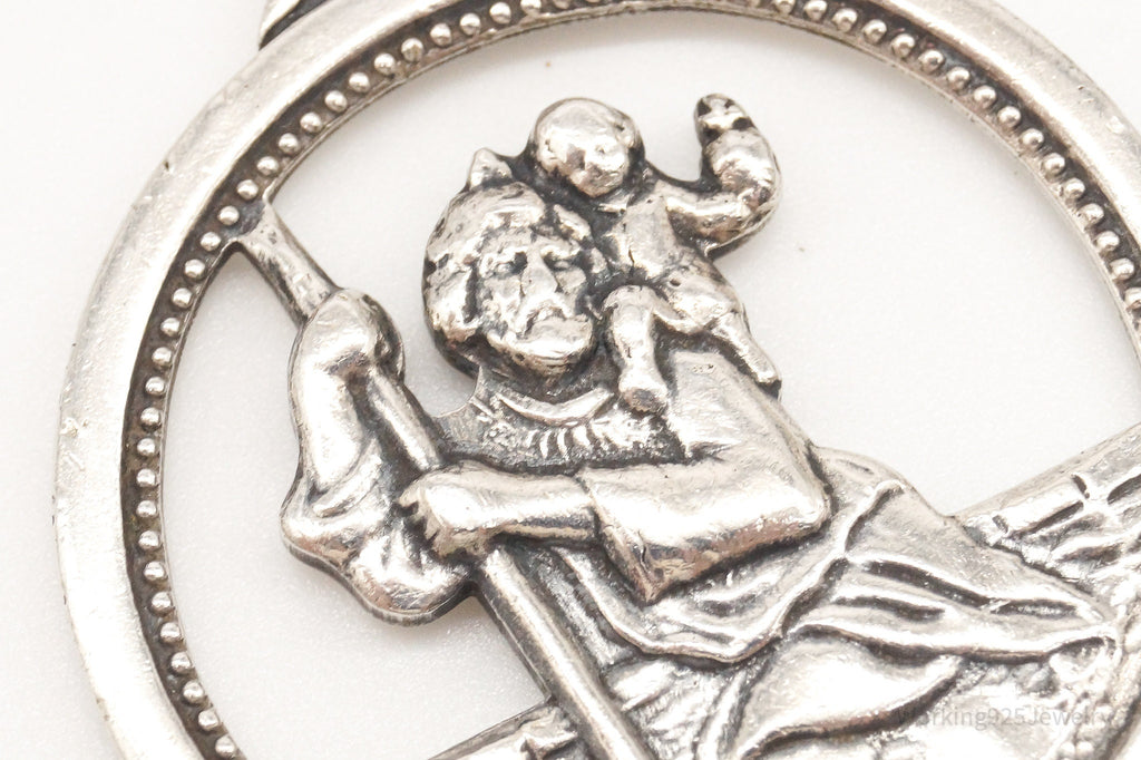 Antique Saint Christopher Protect Us Sterling Silver Pendant