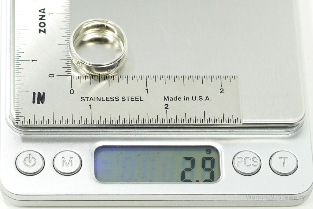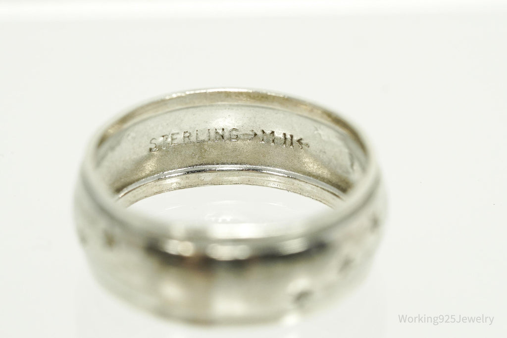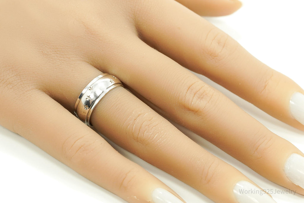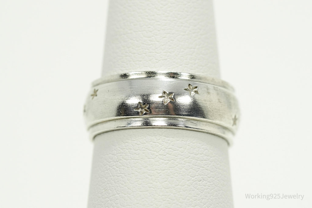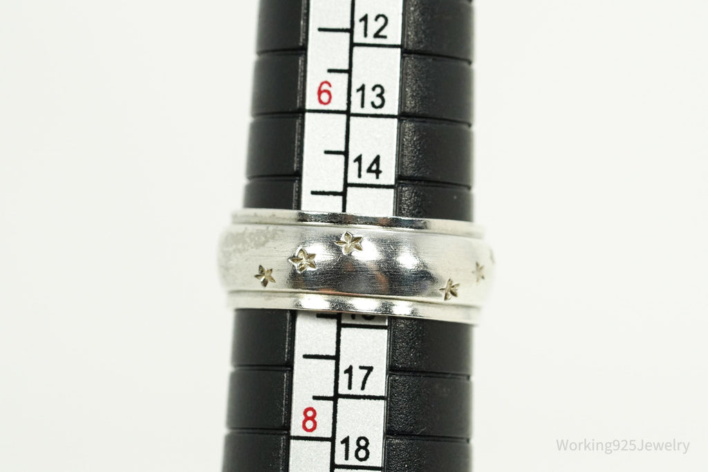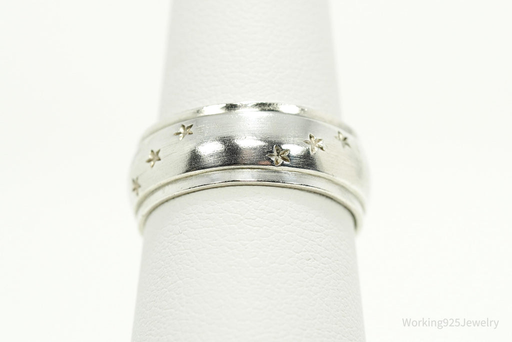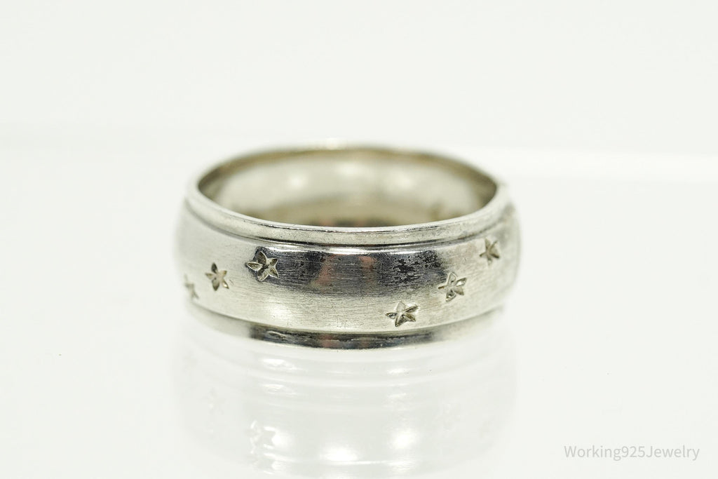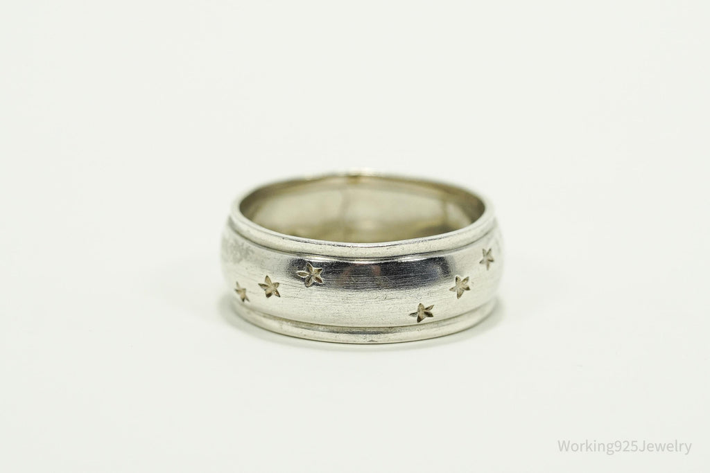 Antique Stars Pattern Sterling Silver Band Ring - Size 7.25