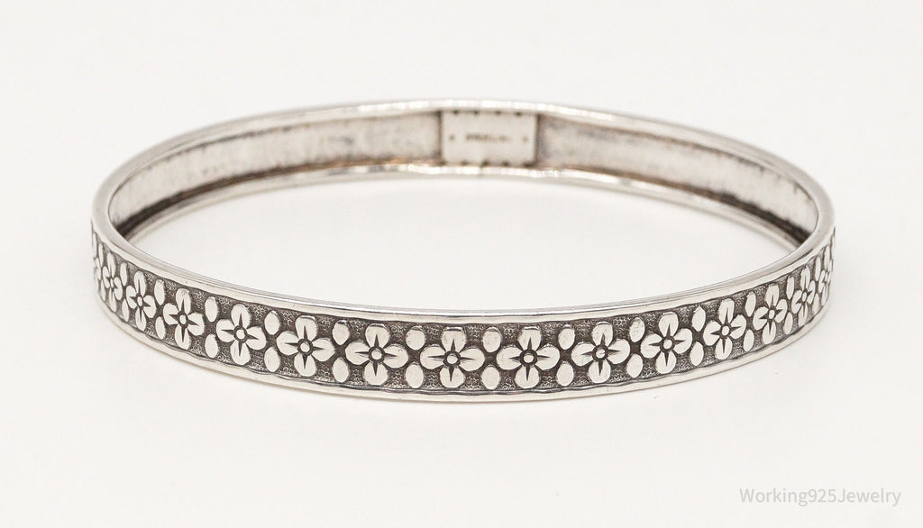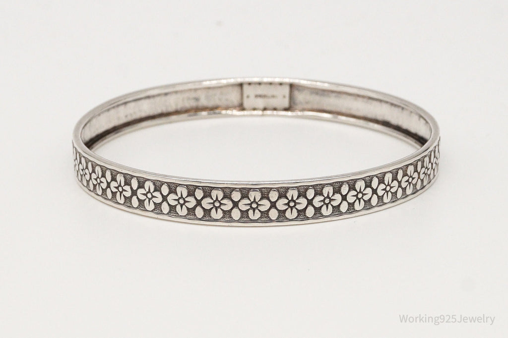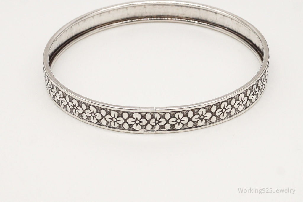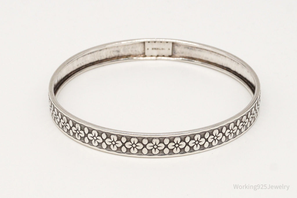 Antique Sterling Silver Floral Pattern Bangle Bracelet