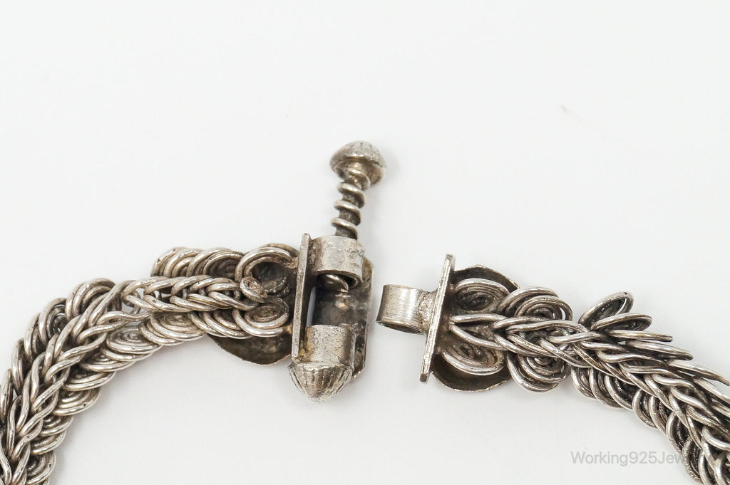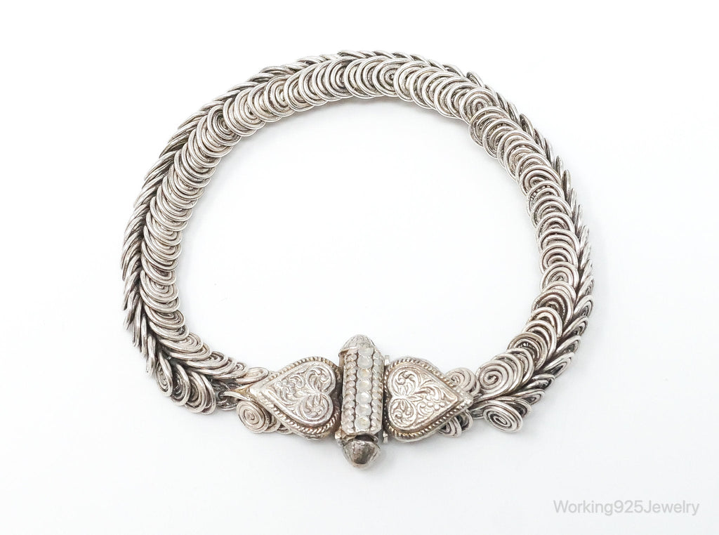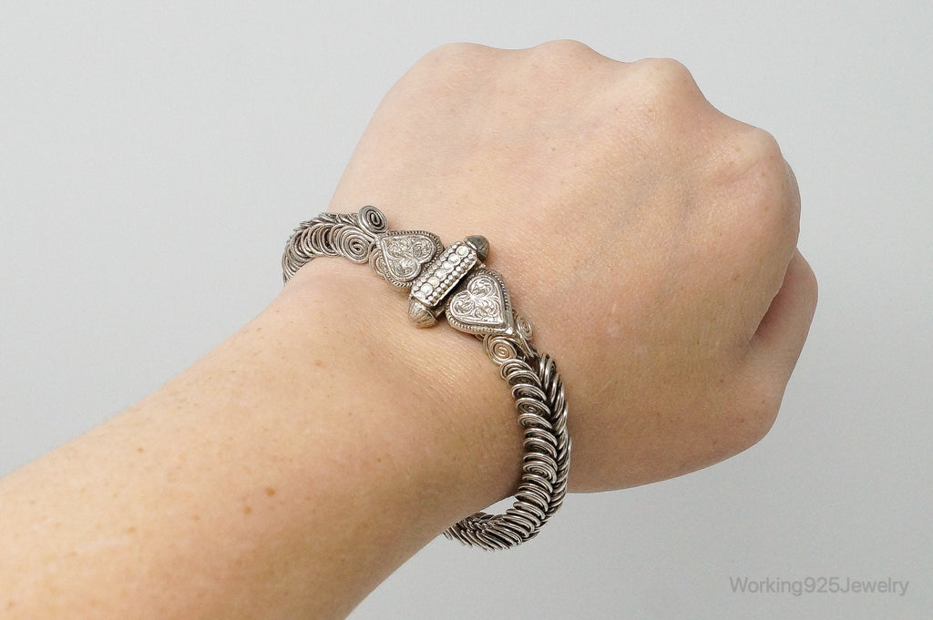 Antique Two Hearts Lovers Silver Screw Clasp Bracelet