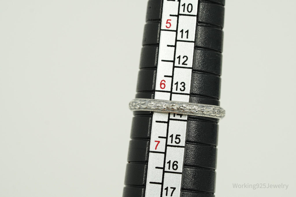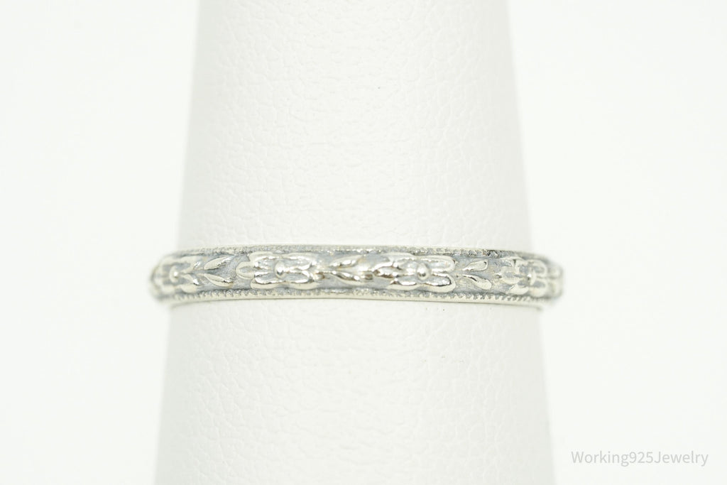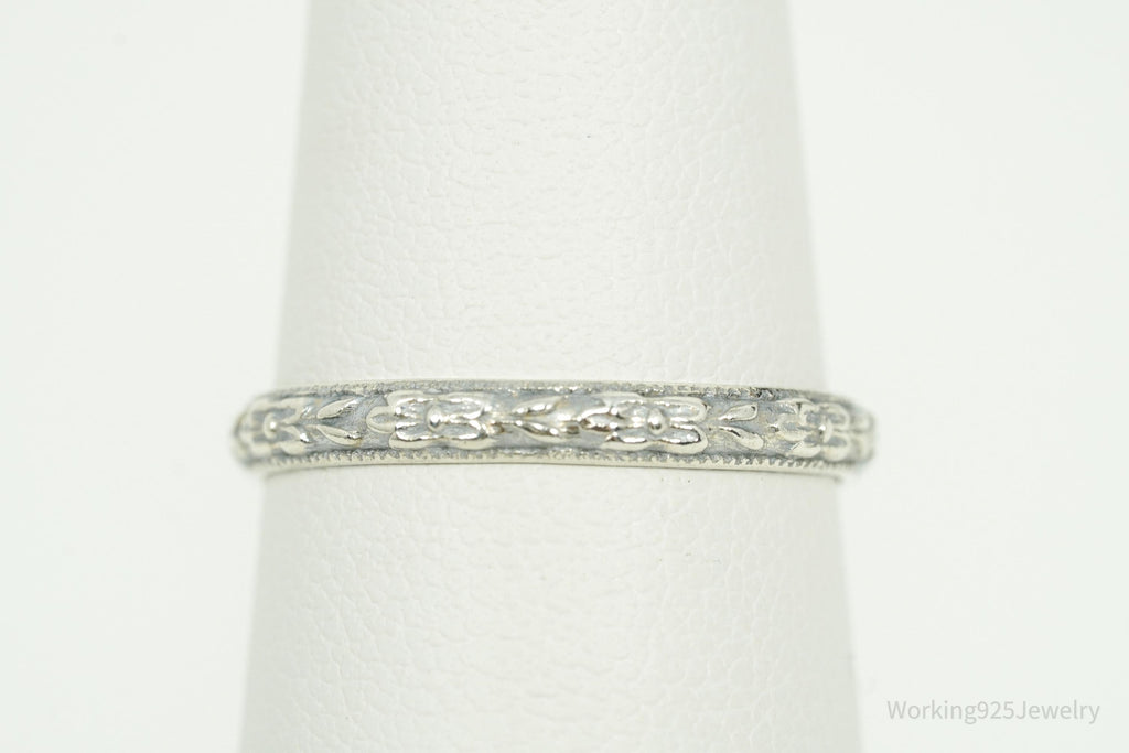 Antique Uncas MFG Co Flowers Pattern Sterling Silver Band Ring - Size 6.25