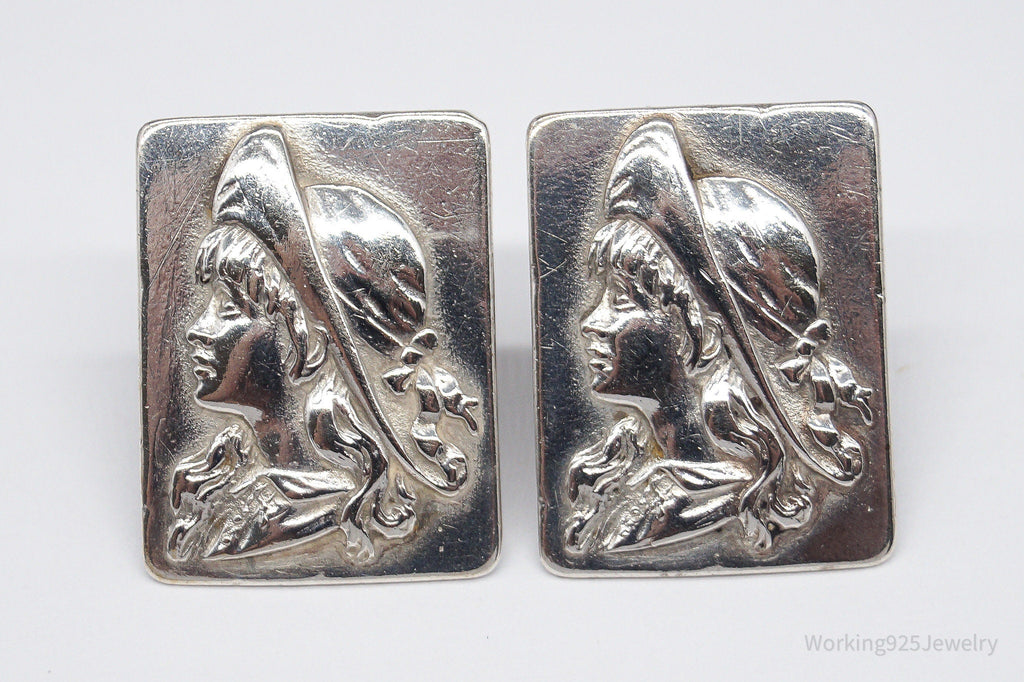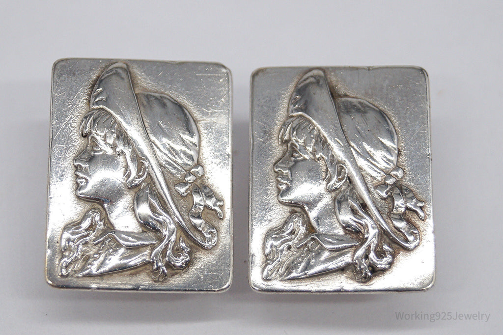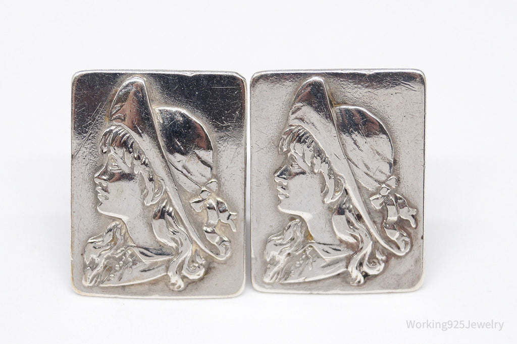Antique Victorian Era 1800s Woman Sterling Silver Cufflinks