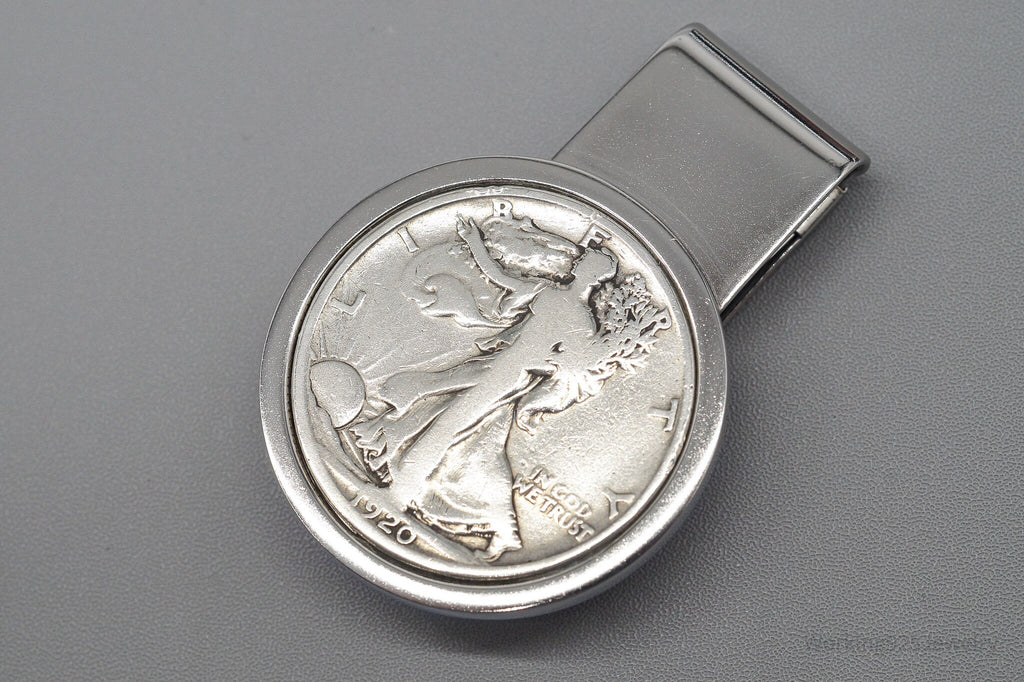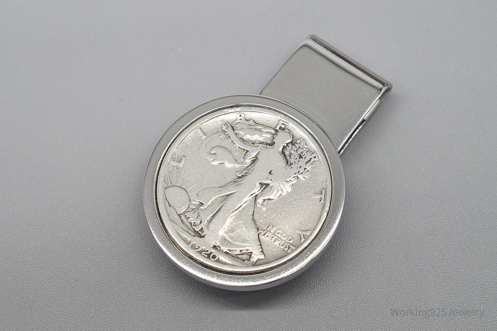 Antique Vintage 1920 Walking Liberty Half Dollar Silver Coin St. Steel Money Clip