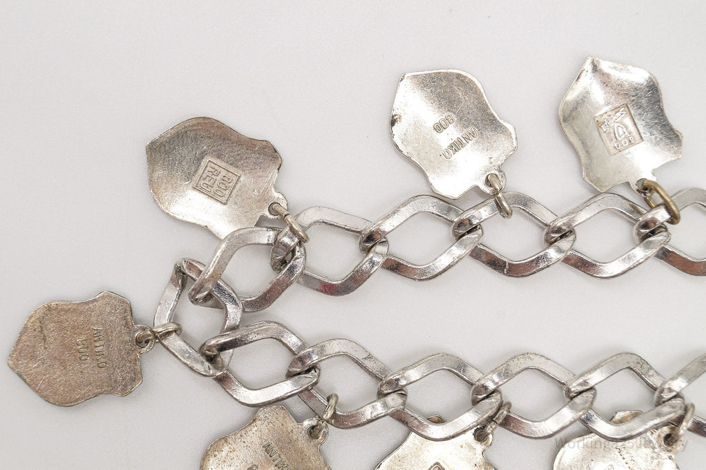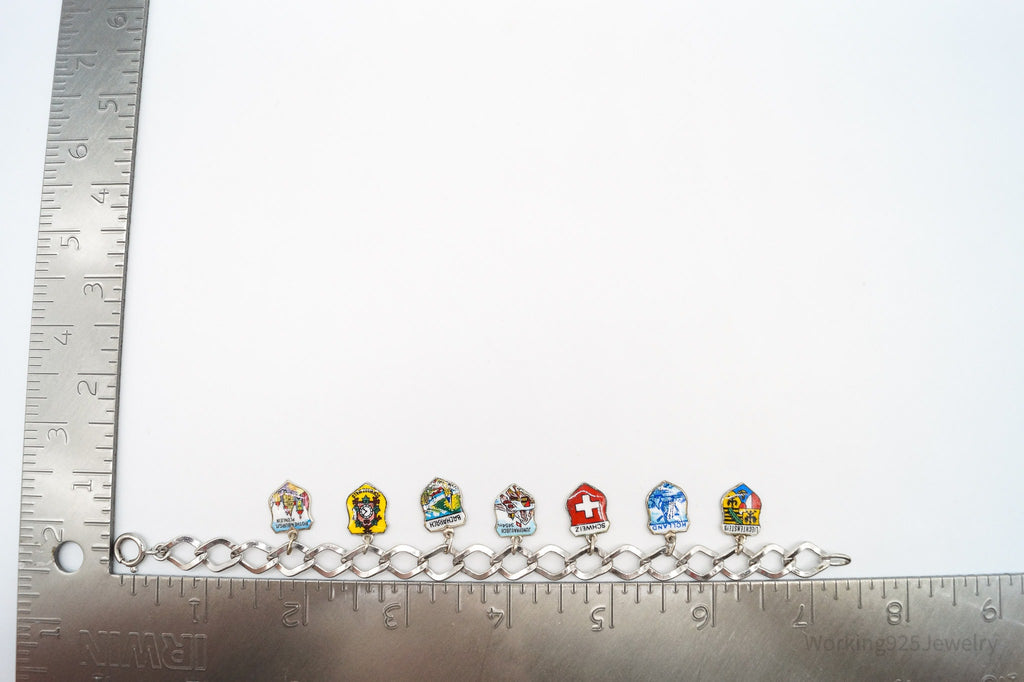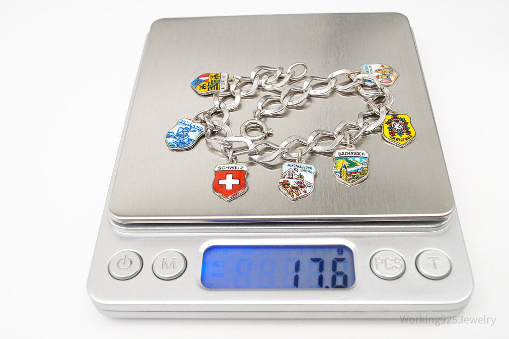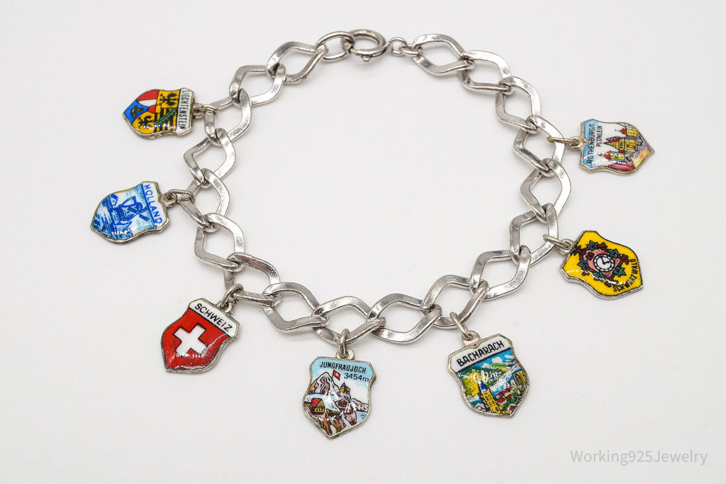 Antique Vintage Enamel Travel 800 / 835 Silver Shield Charms Silver Bracelet
