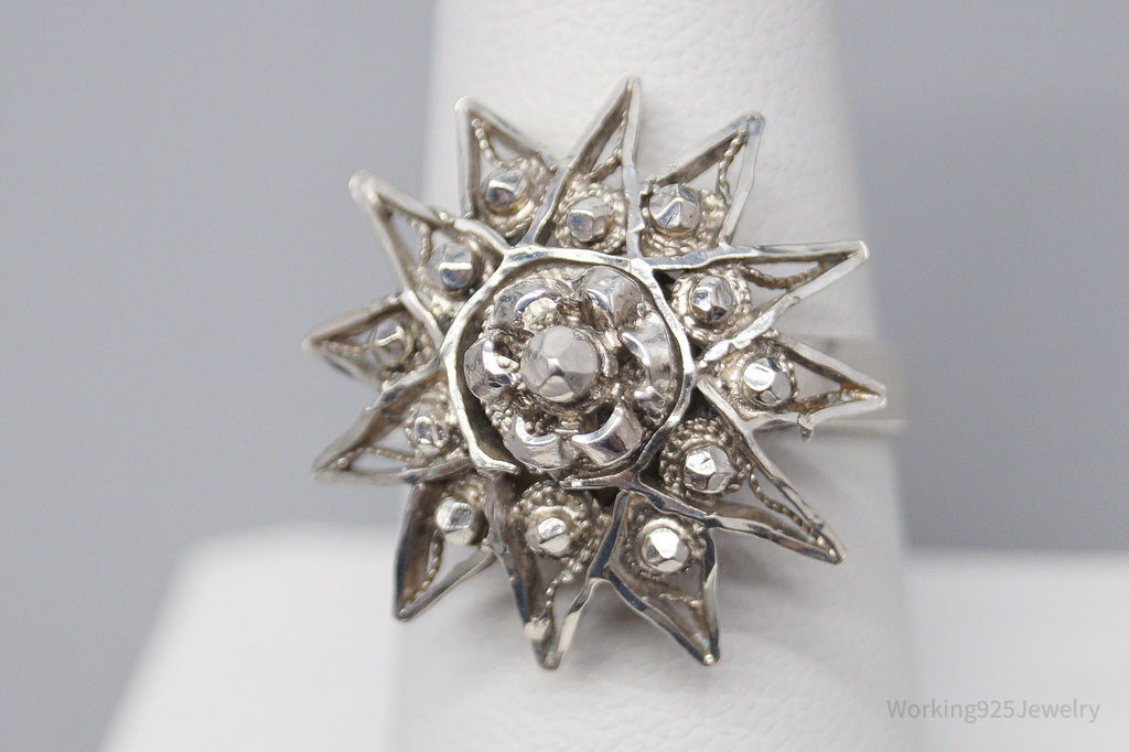 Antique Vintage Modernist Style Silver Ring - Size 8.75 Adjustable