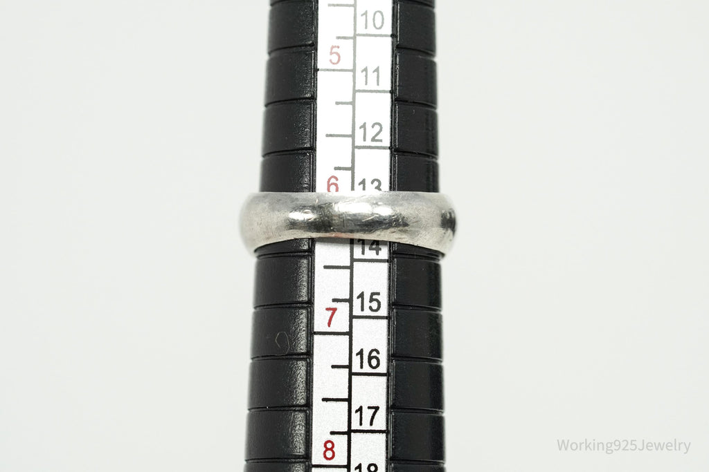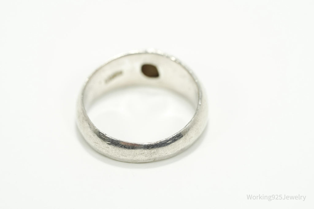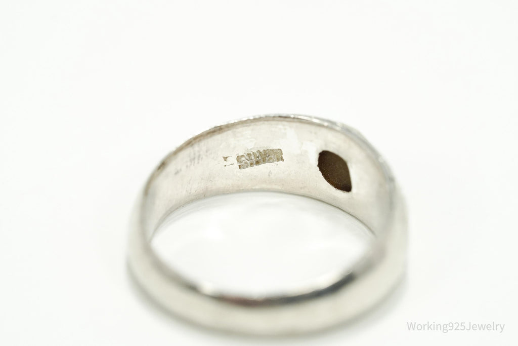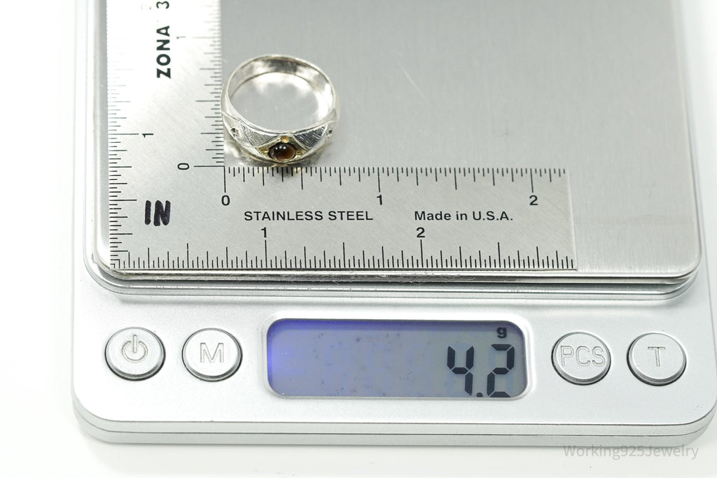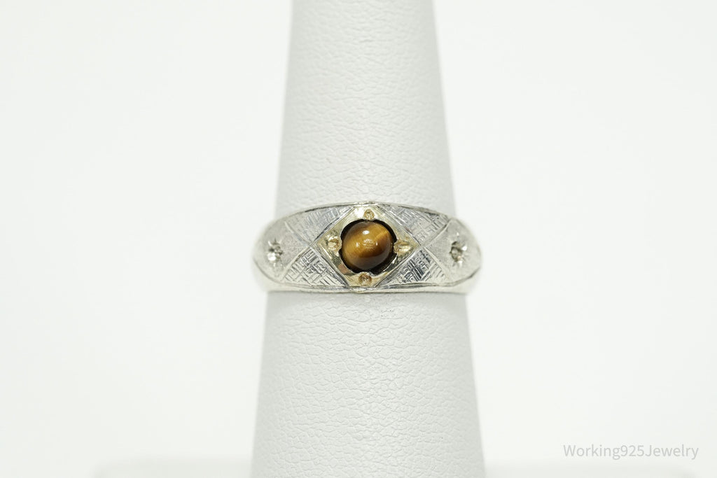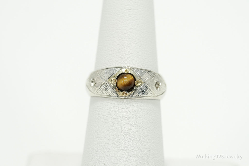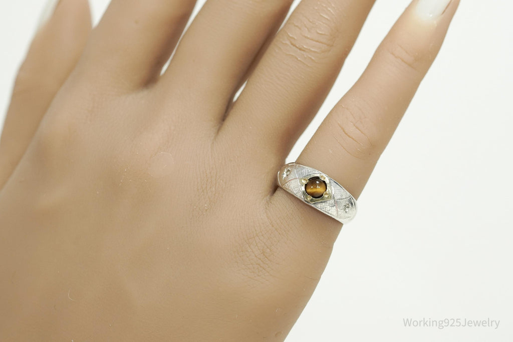 Antique Vintage Tigers Eye Gold Wash Silver Ring - Size 6.25