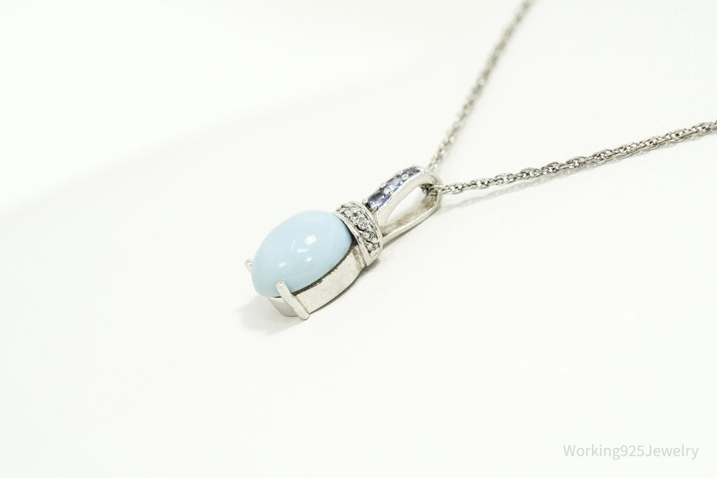 BBJ Blue Larimar, Tanzanite, And White Topaz Sterling Silver Necklace 18"