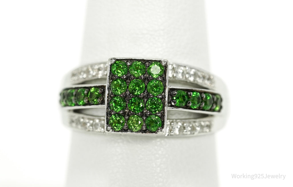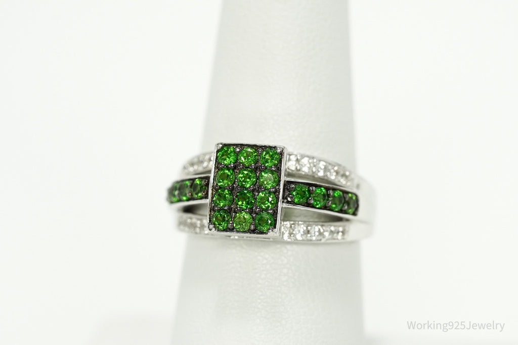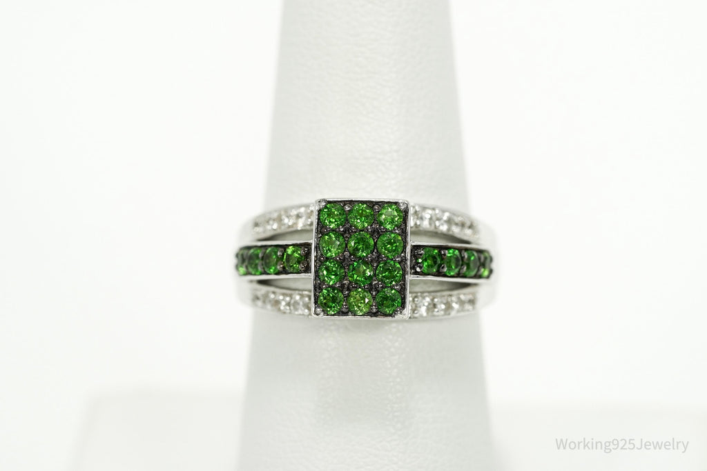 BBJ Green Chrome Diopside & Cubic Zirconia Sterling Silver Ring Size 6.75