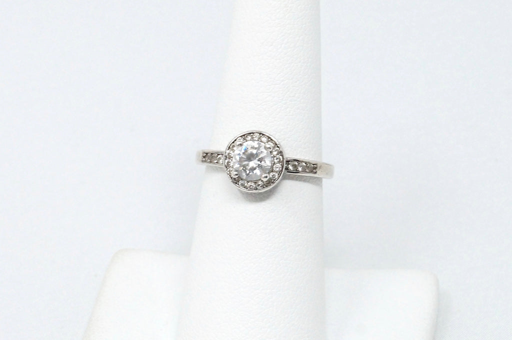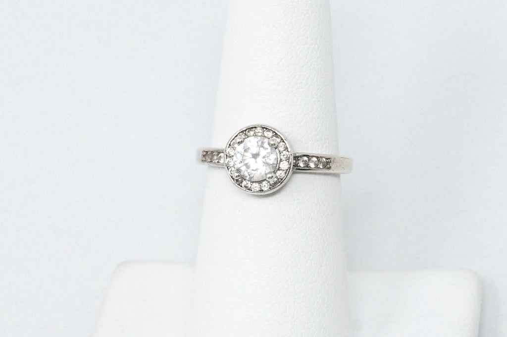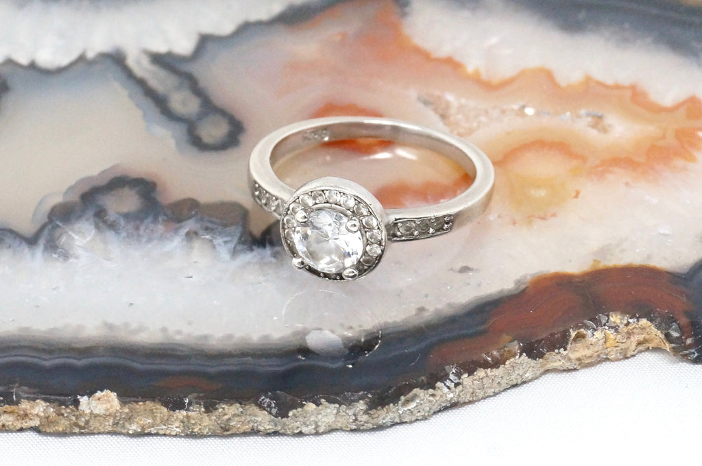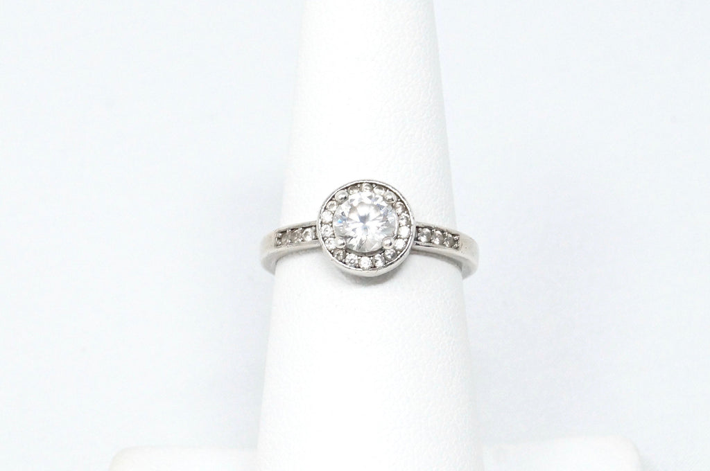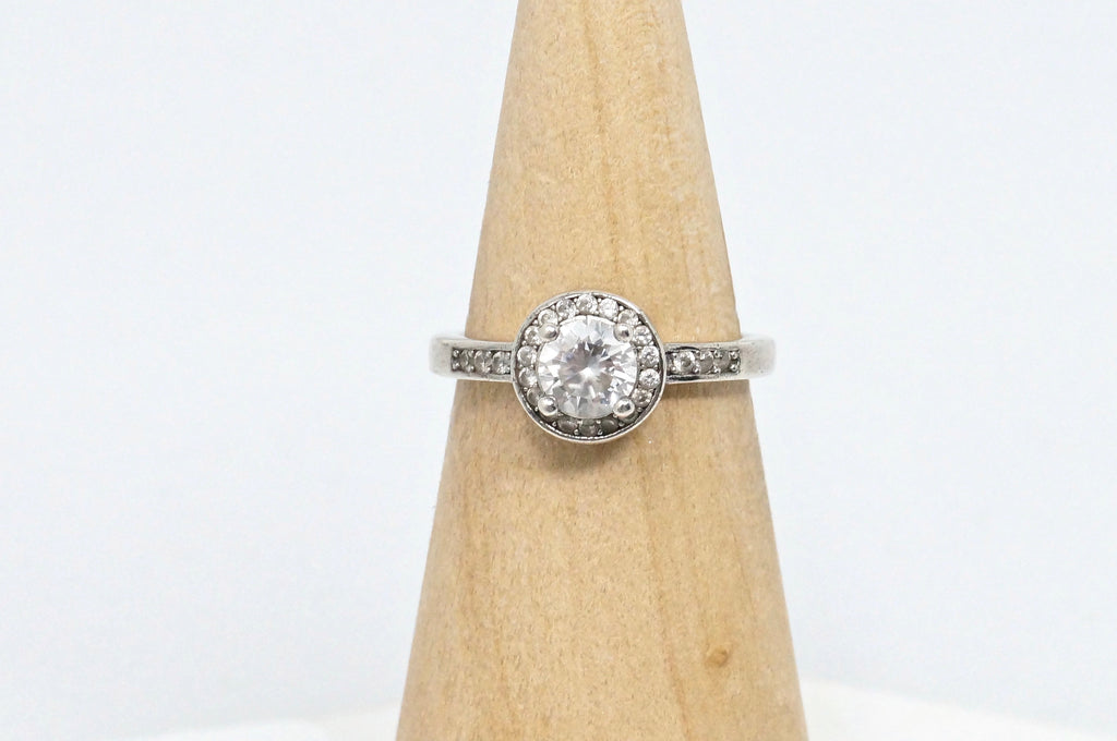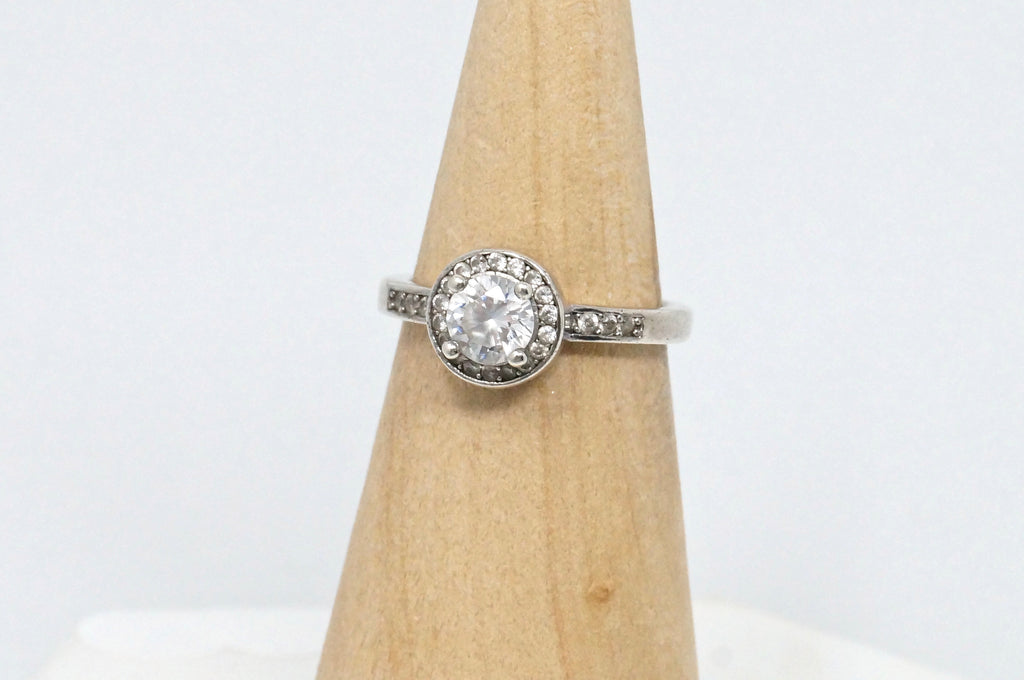 Beautiful Vintage Large Cubic Zirconia Sterling Silver Statement Ring Size 6.25