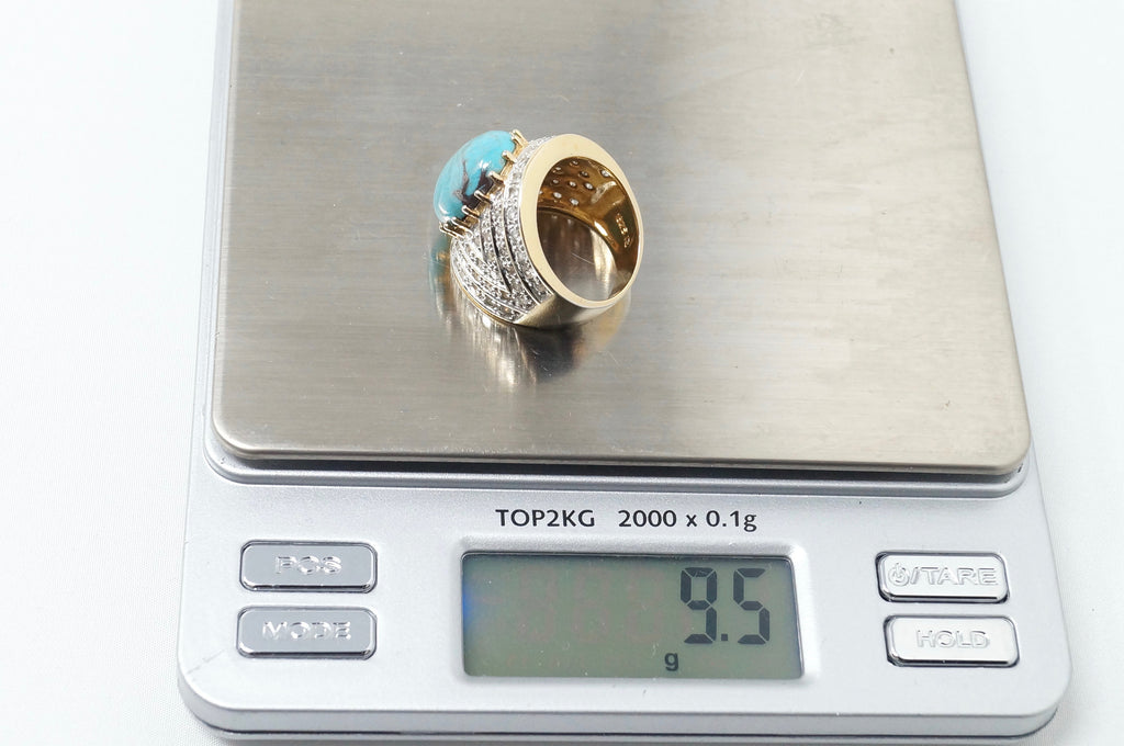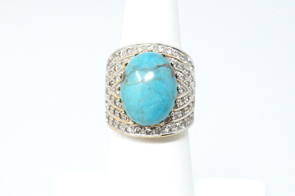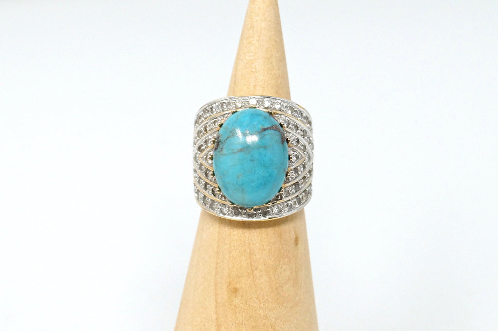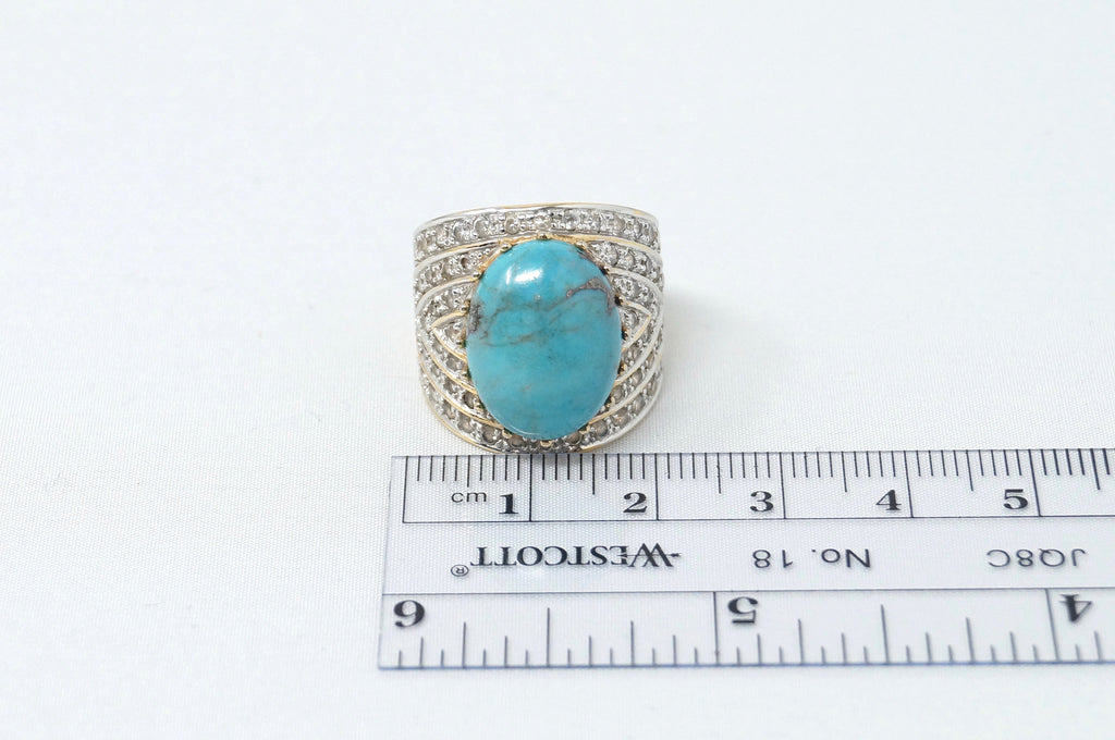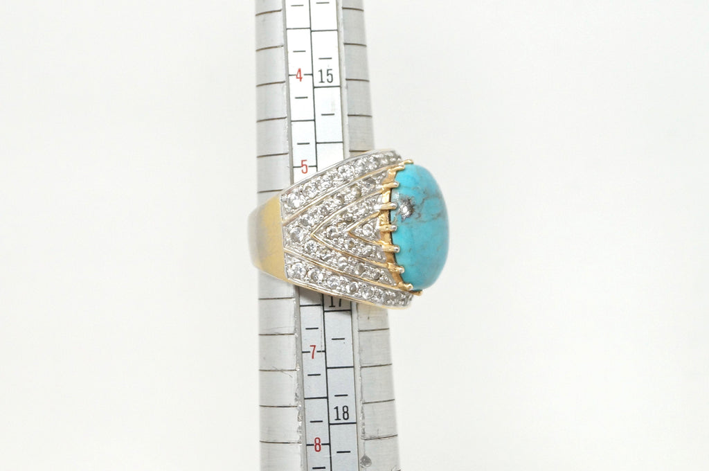 Beautiful Vintage Large Turquoise Cz Gold Vermeil Sterling Silver Ring - Size 6