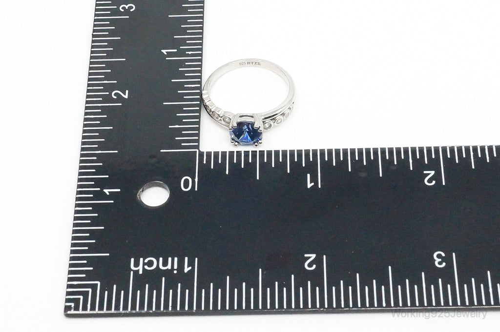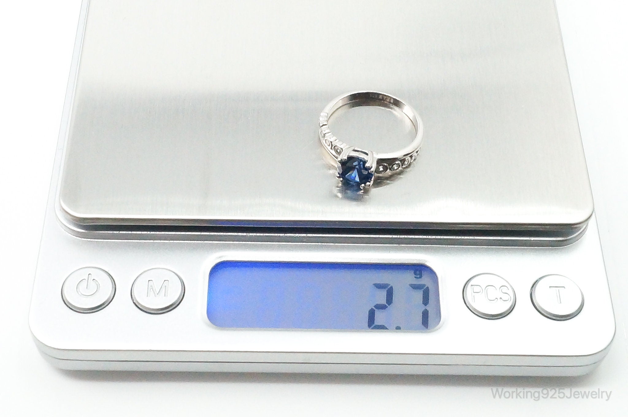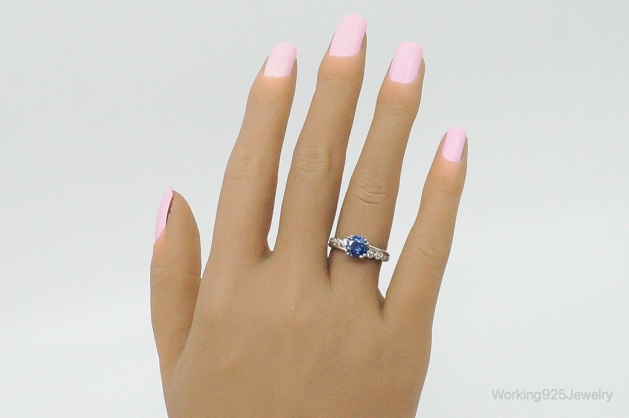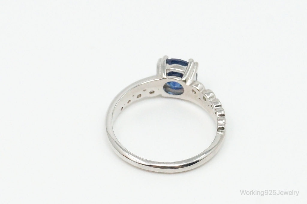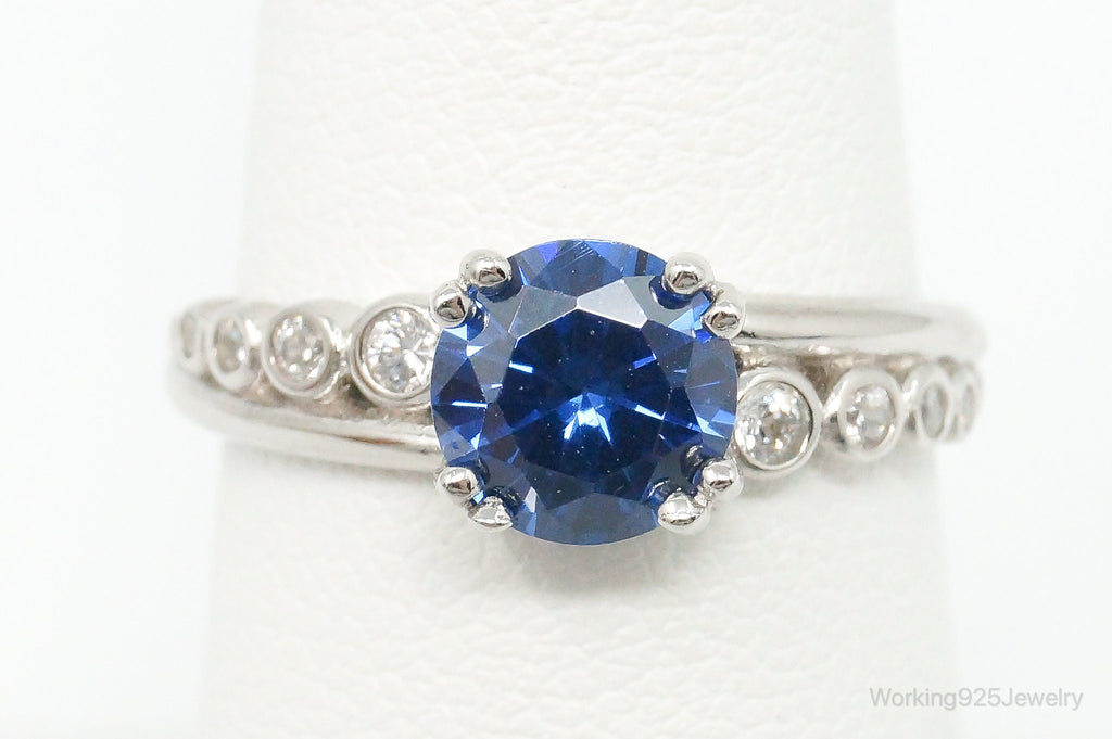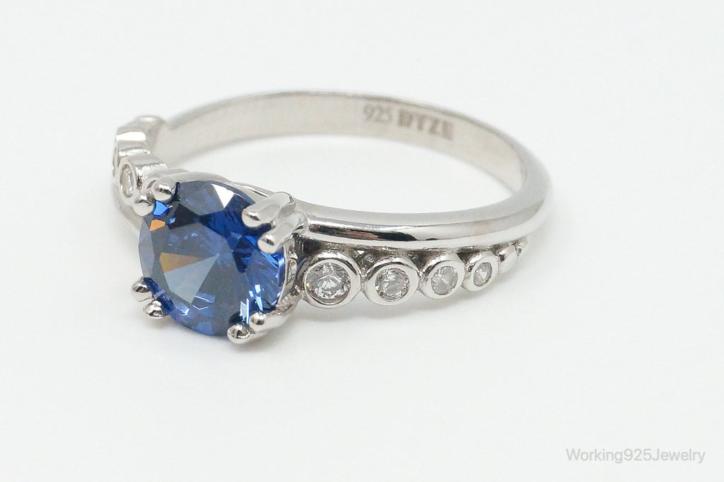 Blue & White Cubic Zirconia Sterling Silver Ring - Size 7