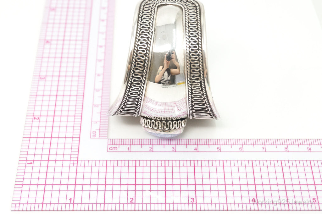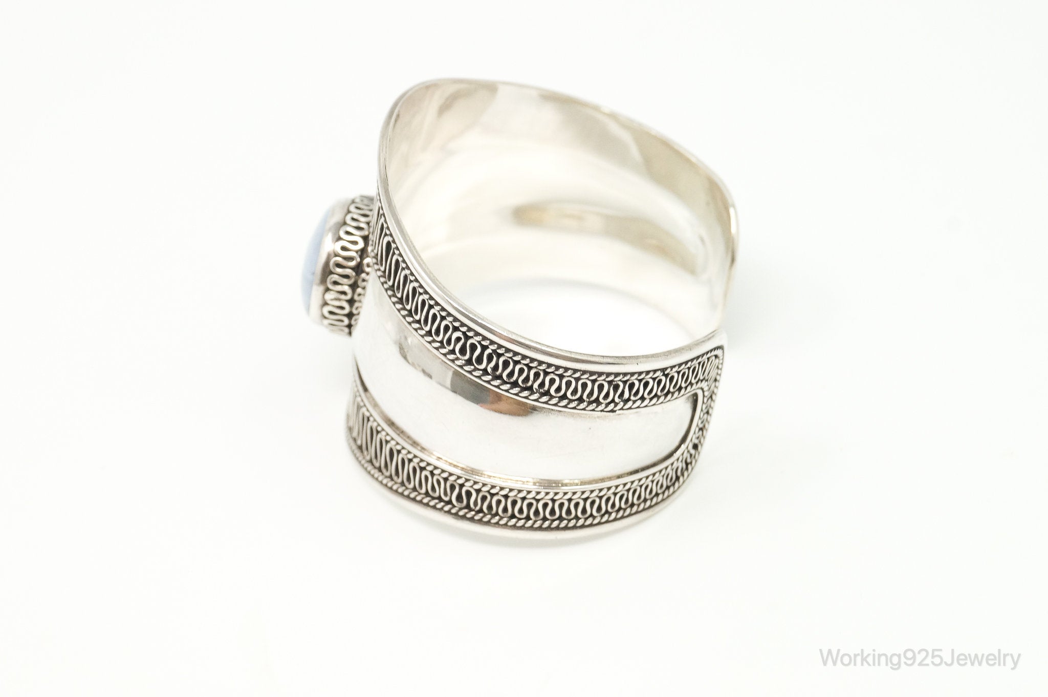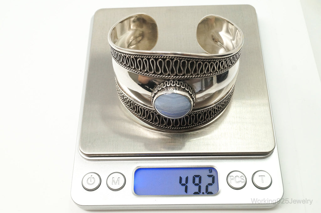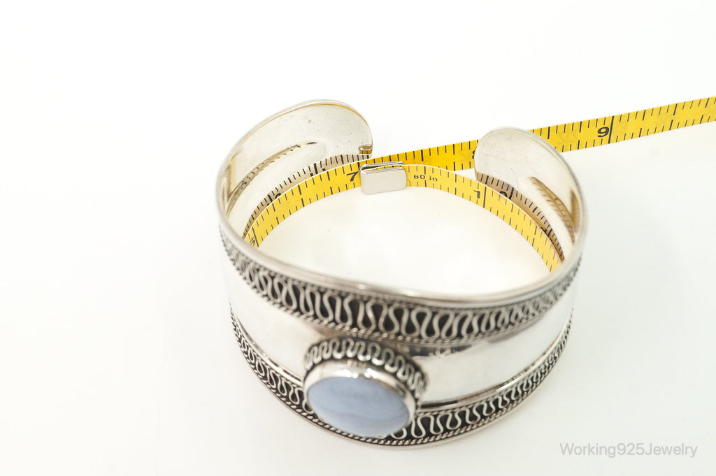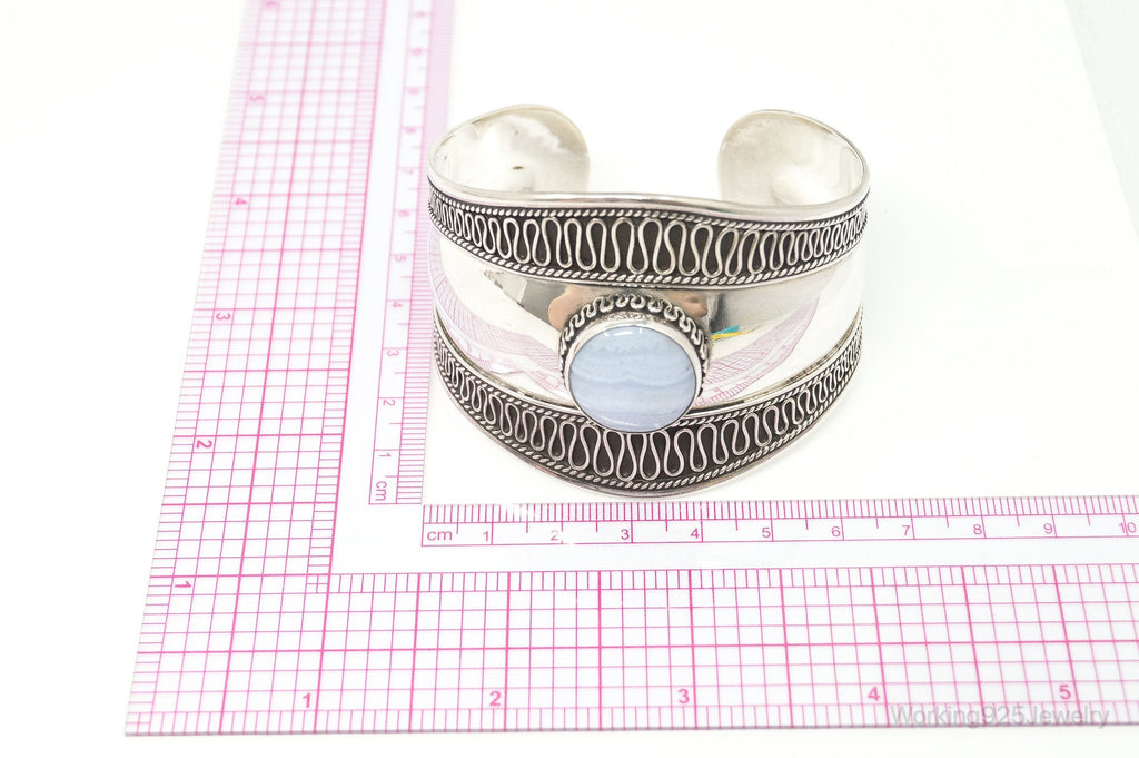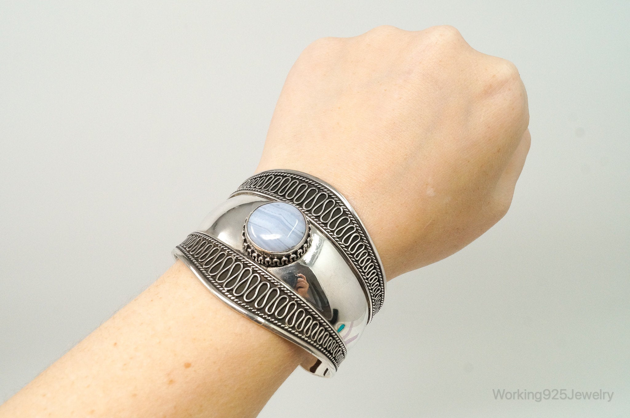 Designer BA Suarti Blue Lace Agate Bali Sterling Silver Cuff Bracelets