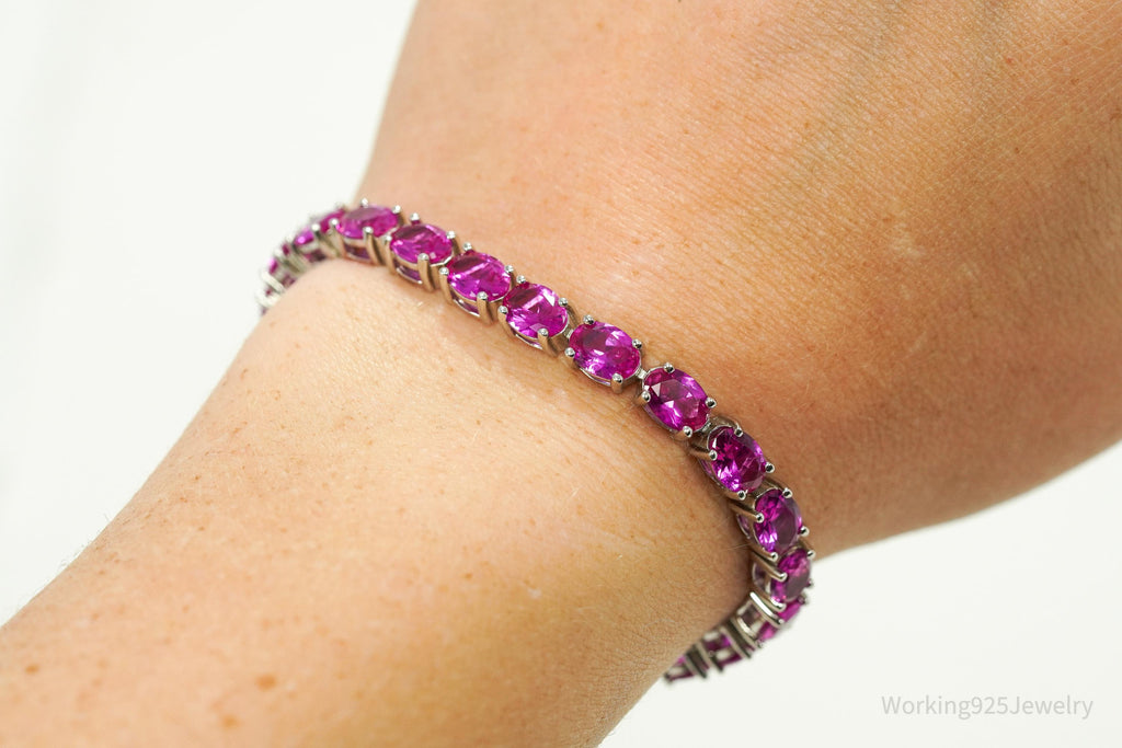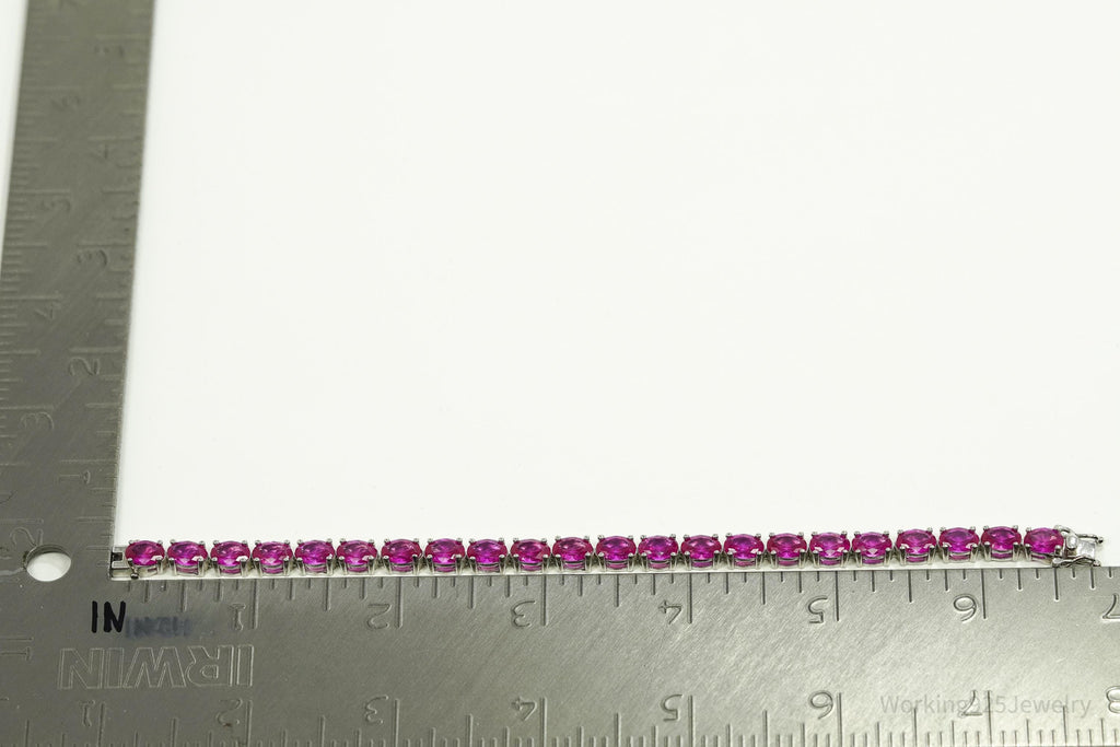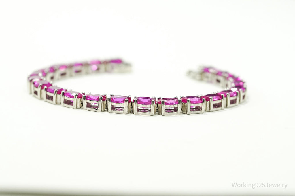 Designer BBJ Lab Sapphire Sterling Silver Tennis Bracelet 6 5/8"