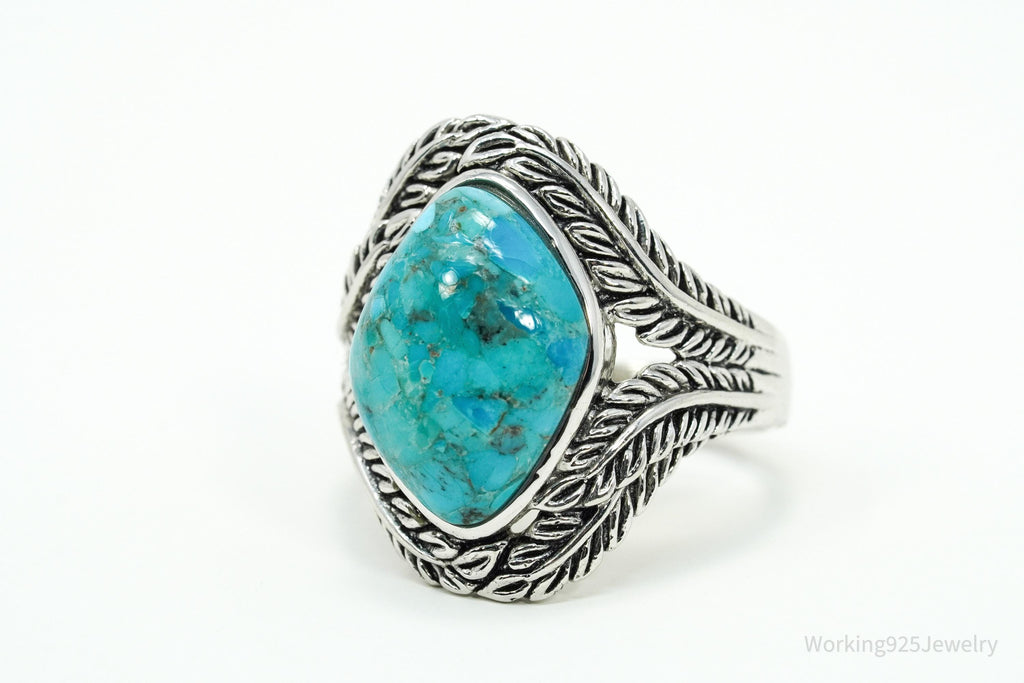 Designer BBJ Turquoise Wrapped Feathers Leaves Design Sterling Silver Ring - Size 12