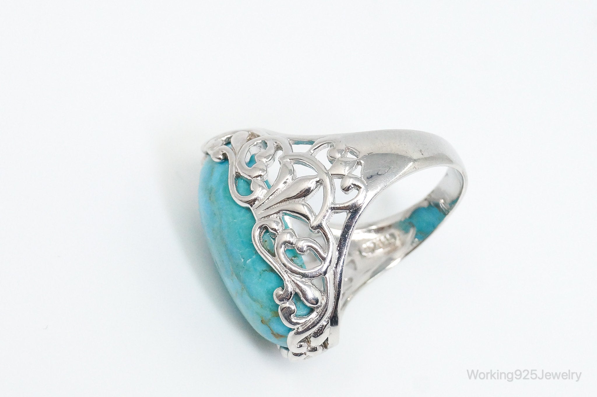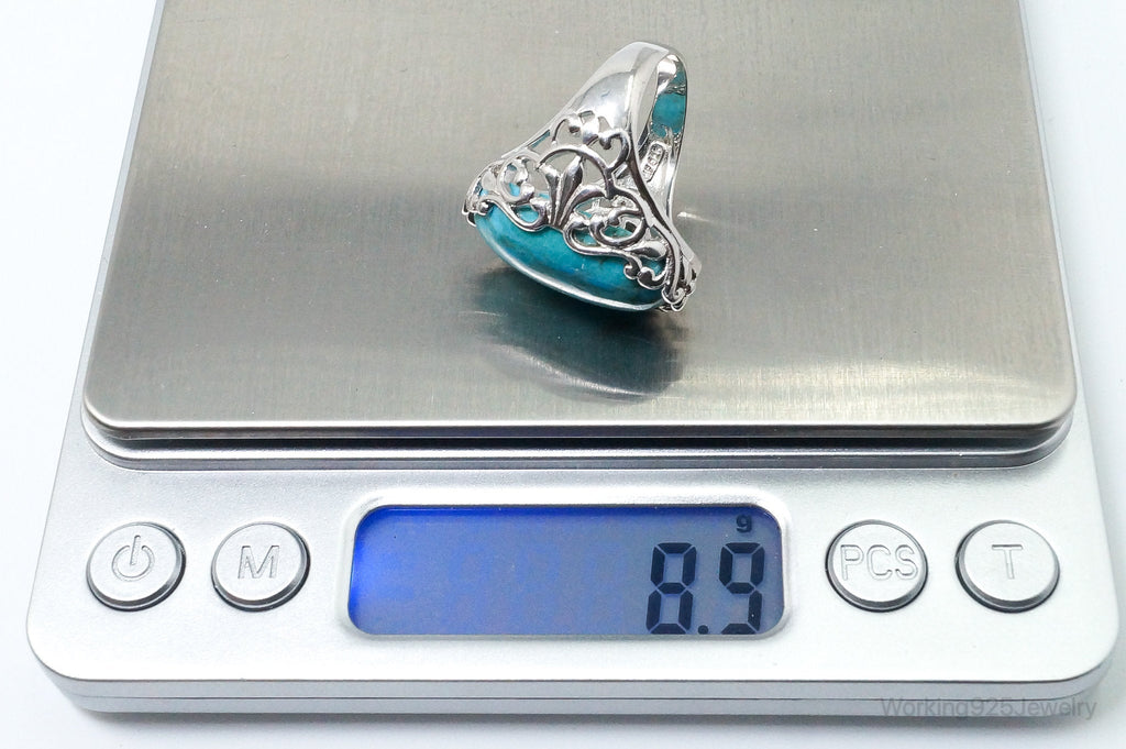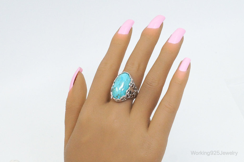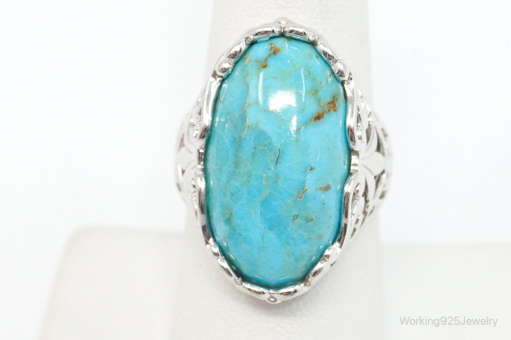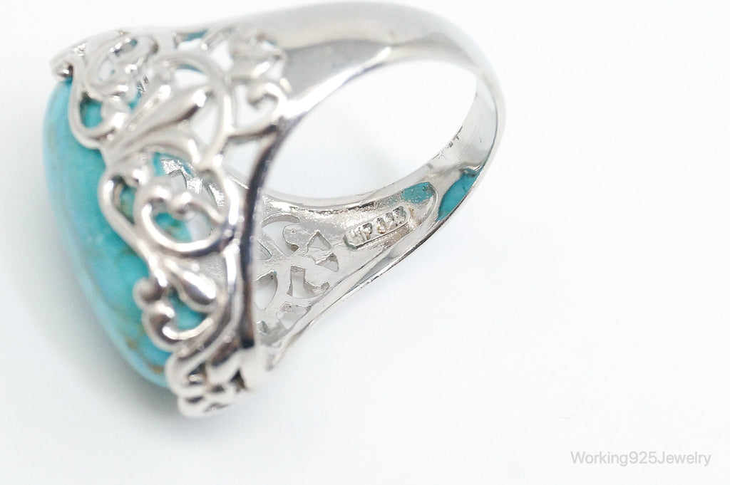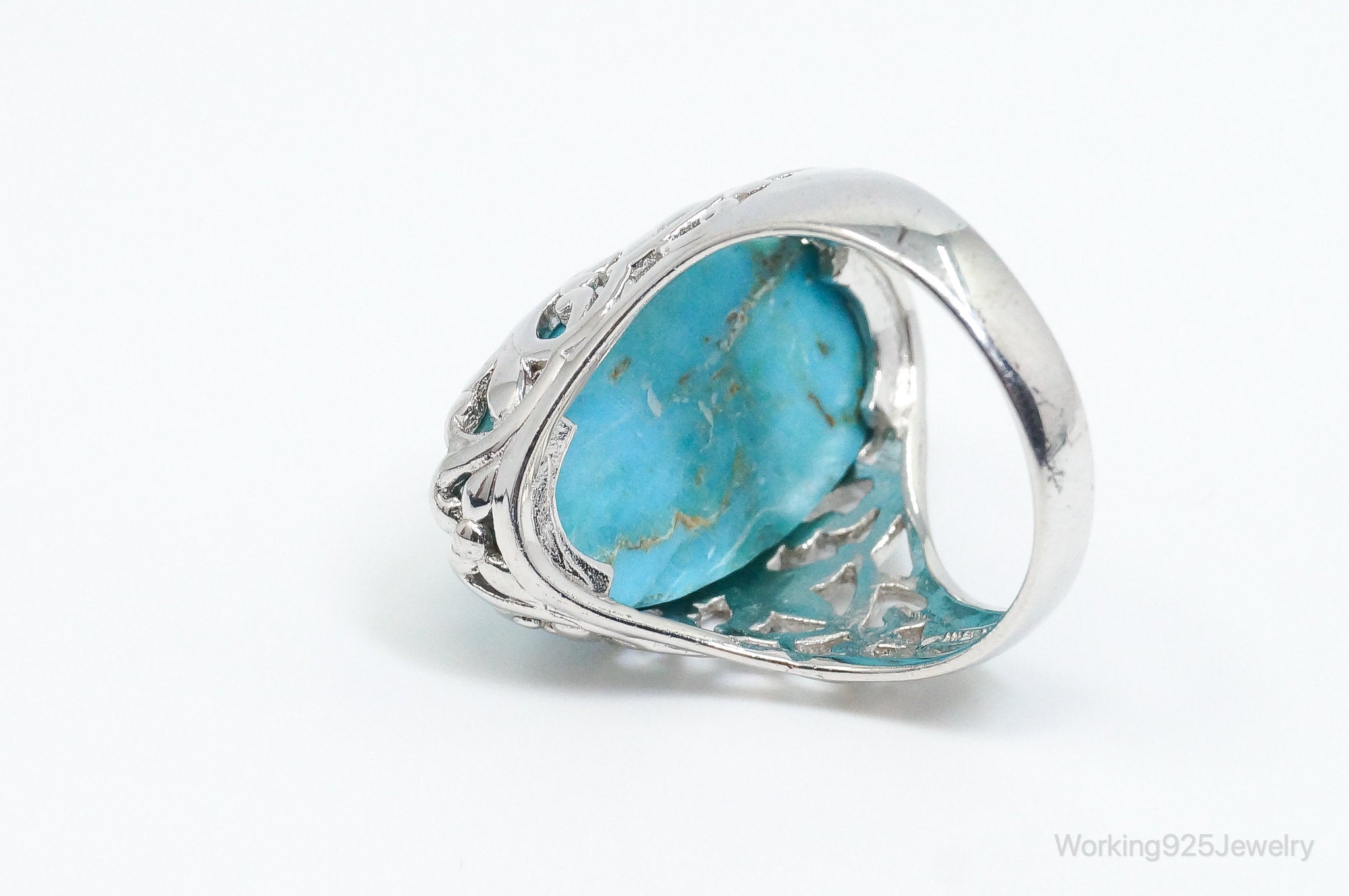 Designer Chapal-Zenray Large Turquoise Sterling Silver Ring - Size 8