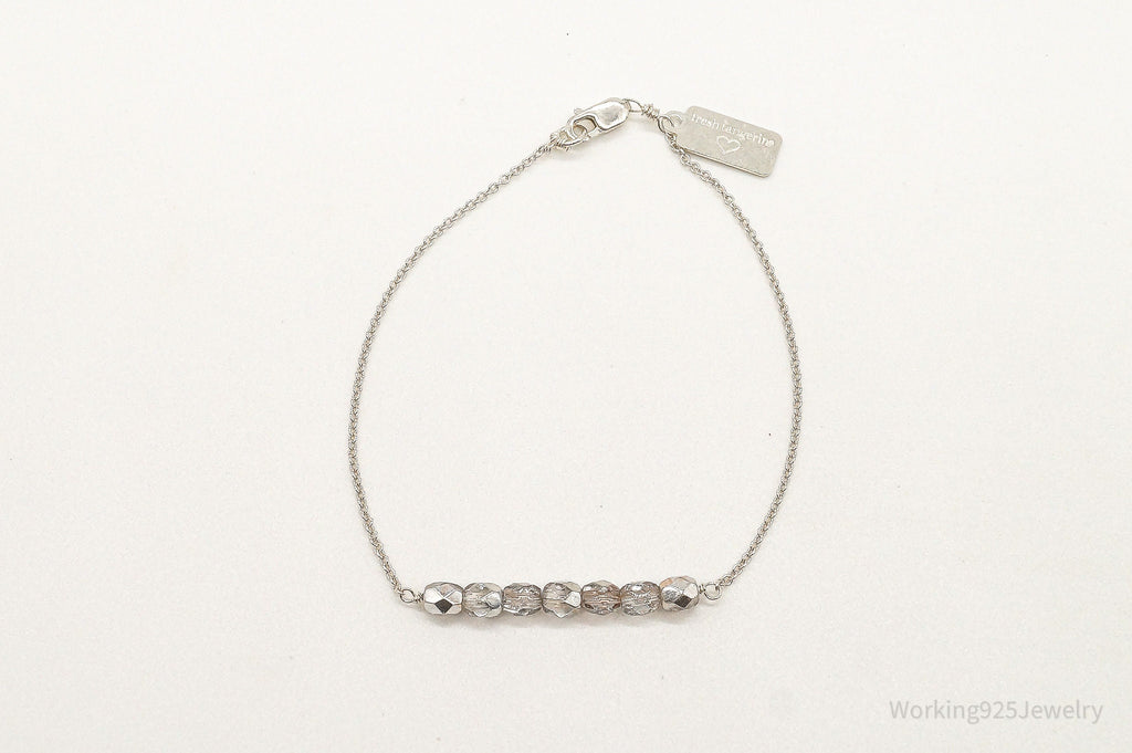 Designer Fresh Tangerine Glass Bead Chain Link Sterling Silver Bracelet