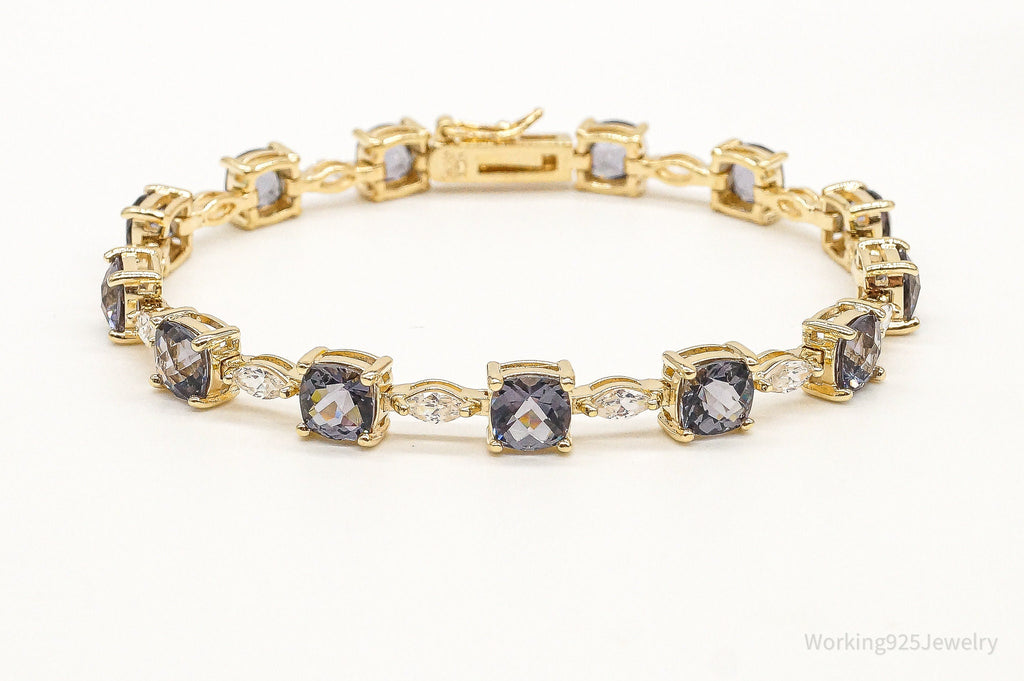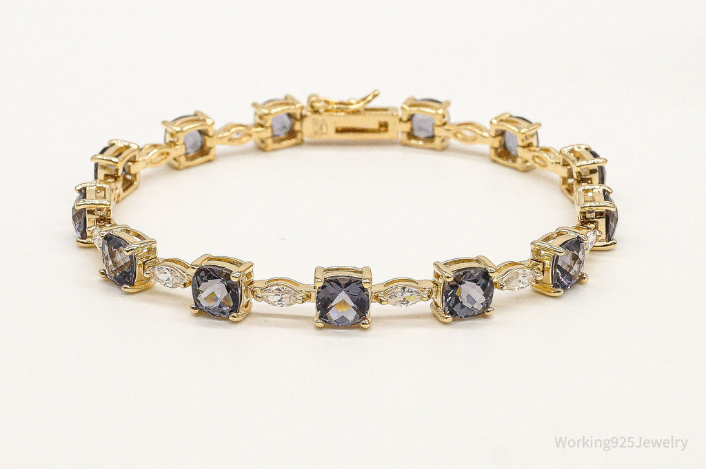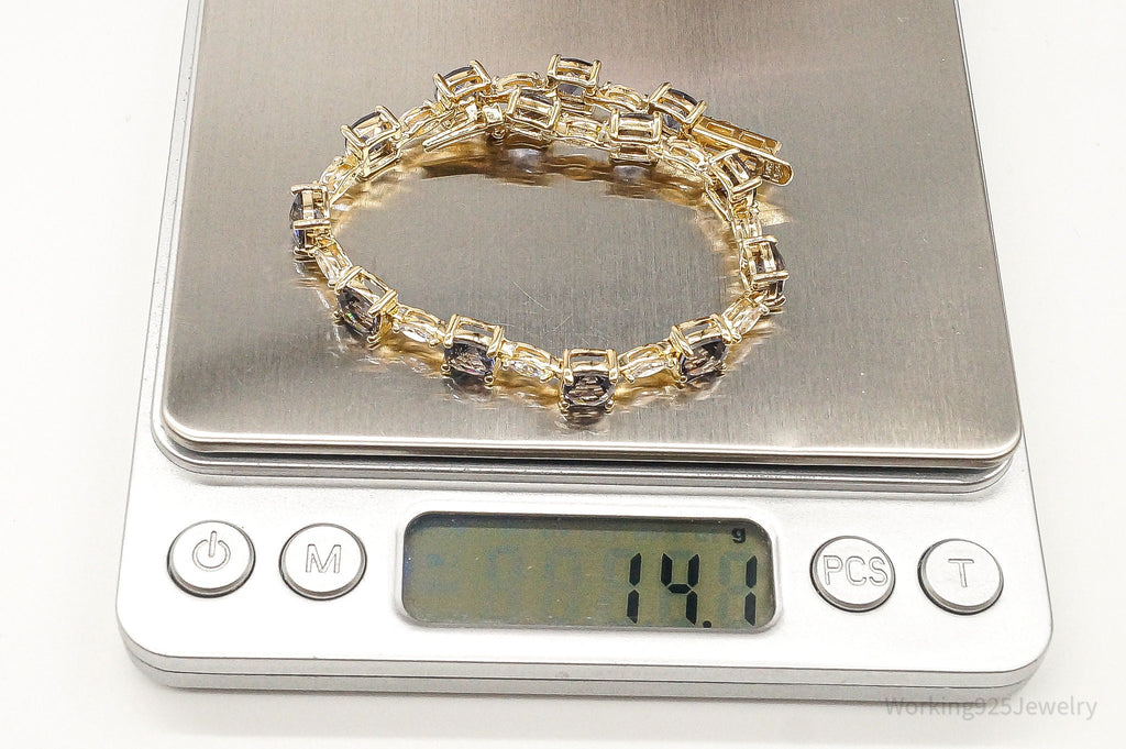 Designer Iolite Cubic Zirconia Gold Over Sterling Silver Bracelet