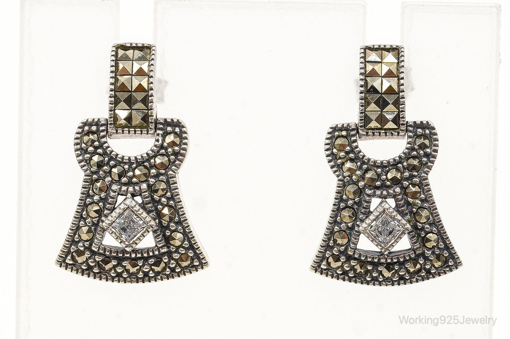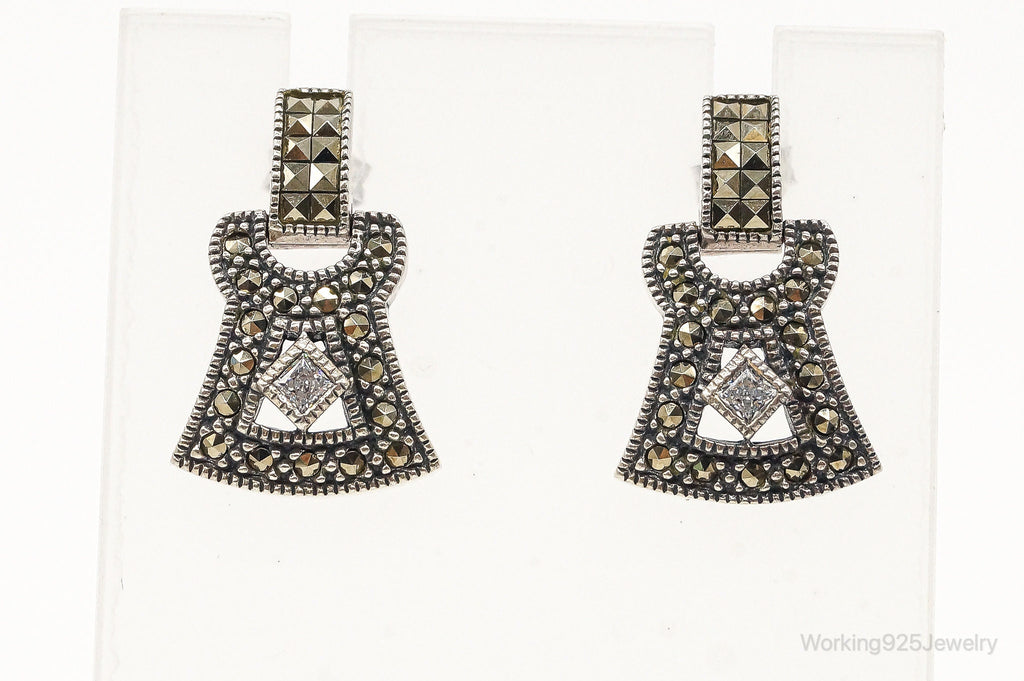 Designer Judith Jack Cubic Zirconia Marcasite Sterling Silver Earrings