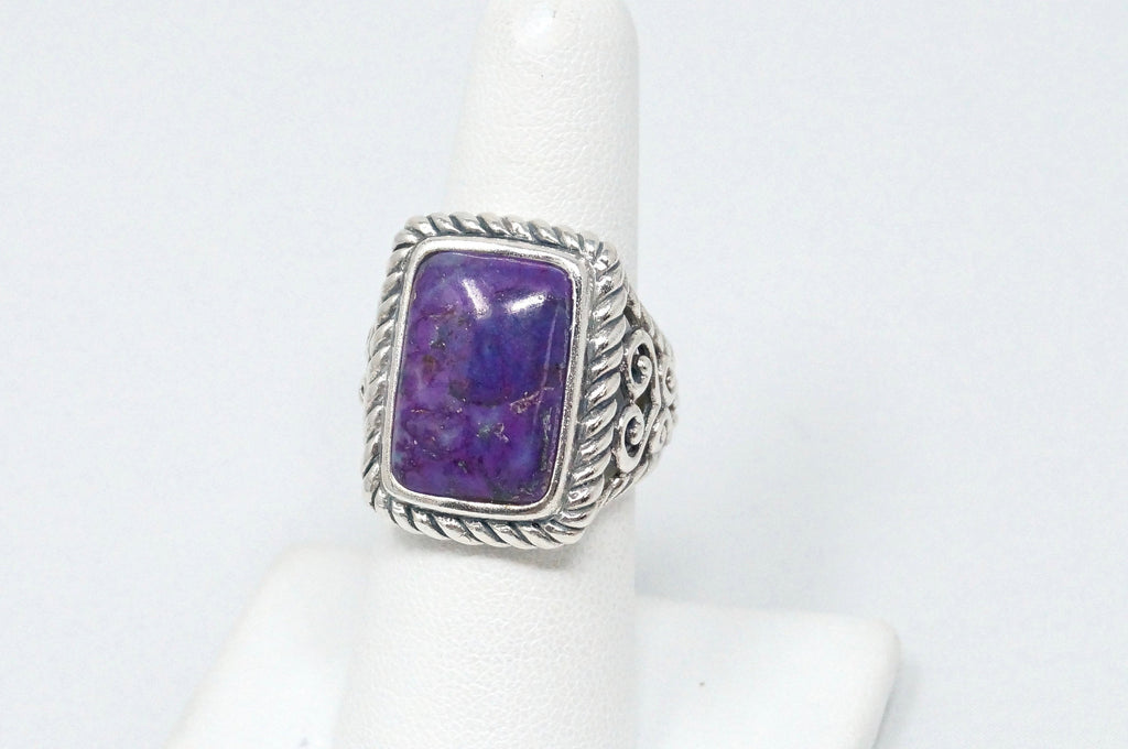 Designer NK Purple Mojave Turquoise Cable Design Statement Ring Sterling Sz 6.5