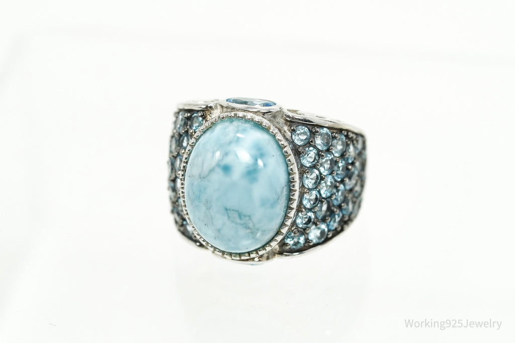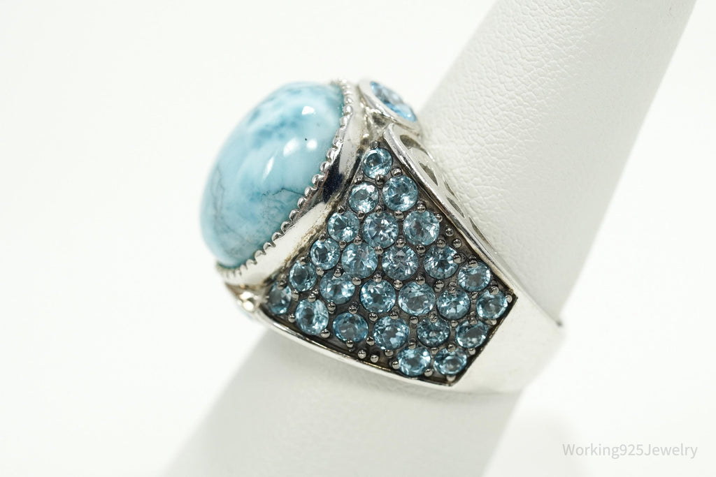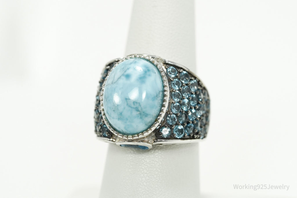 Designer NOA Blue Larimar & Blue Topaz Sterling Silver Ring - Size 7