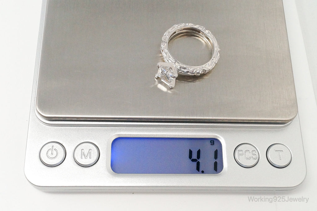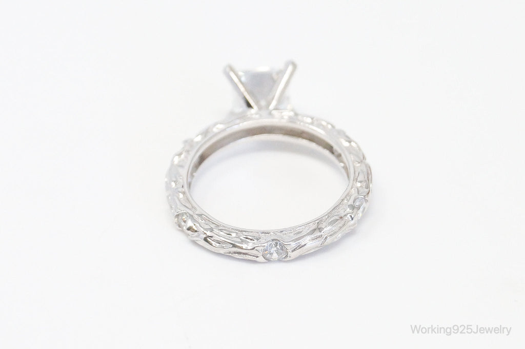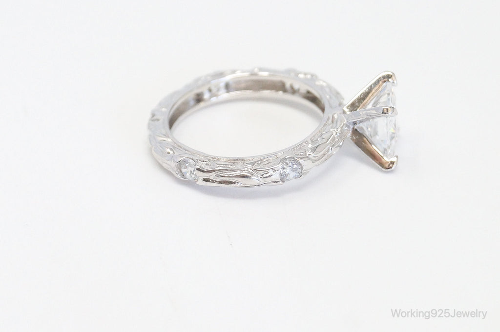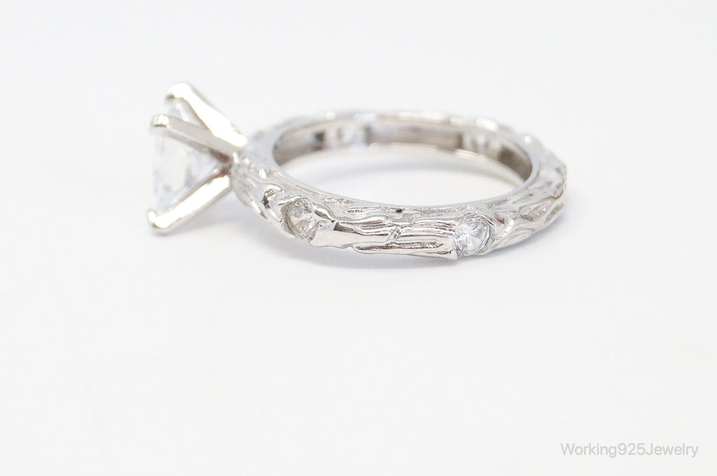 Designer PAJ Large Cubic Zirconia Sterling Silver Statement Ring - Size 8
