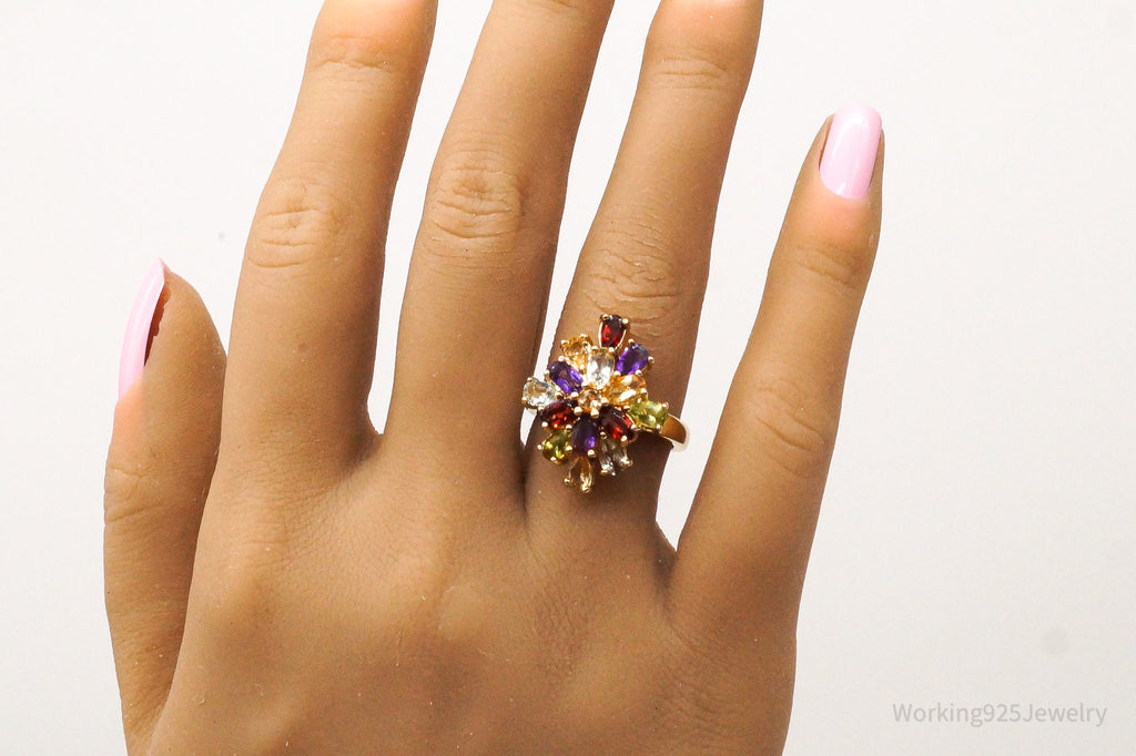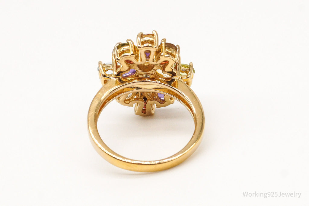 Designer PAJ Multi Gem Gold Vermeil Sterling Silver Ring - Size 6.75