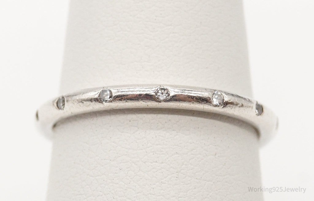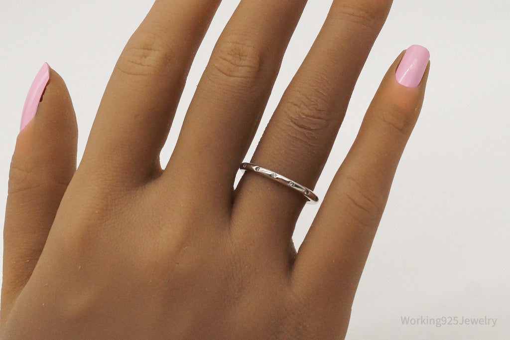 Designer Pandora Cubic Zirconia Sterling Silver Band Ring - Size 6.75