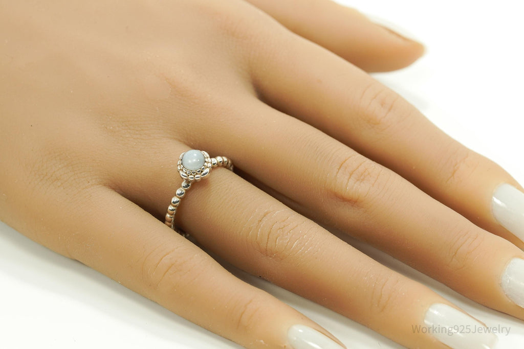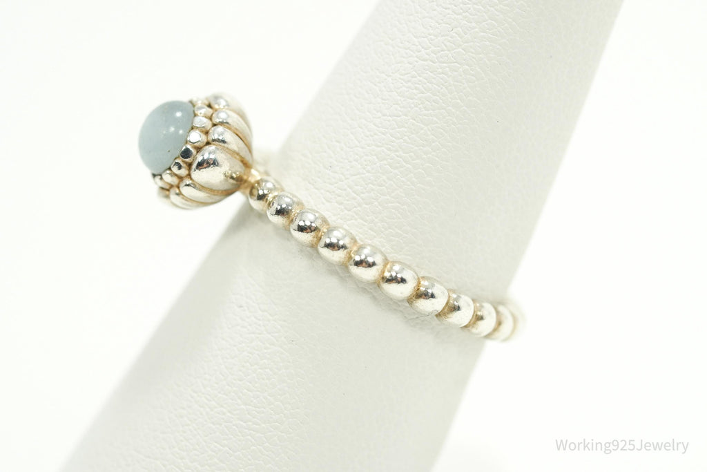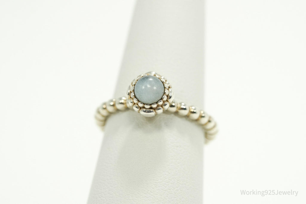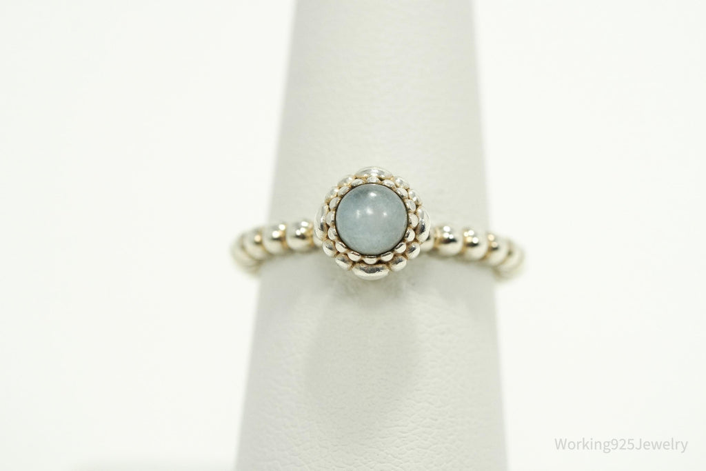 Designer Pandora March Birthday Blooms Aquamarine Sterling Silver Ring - Size 7
