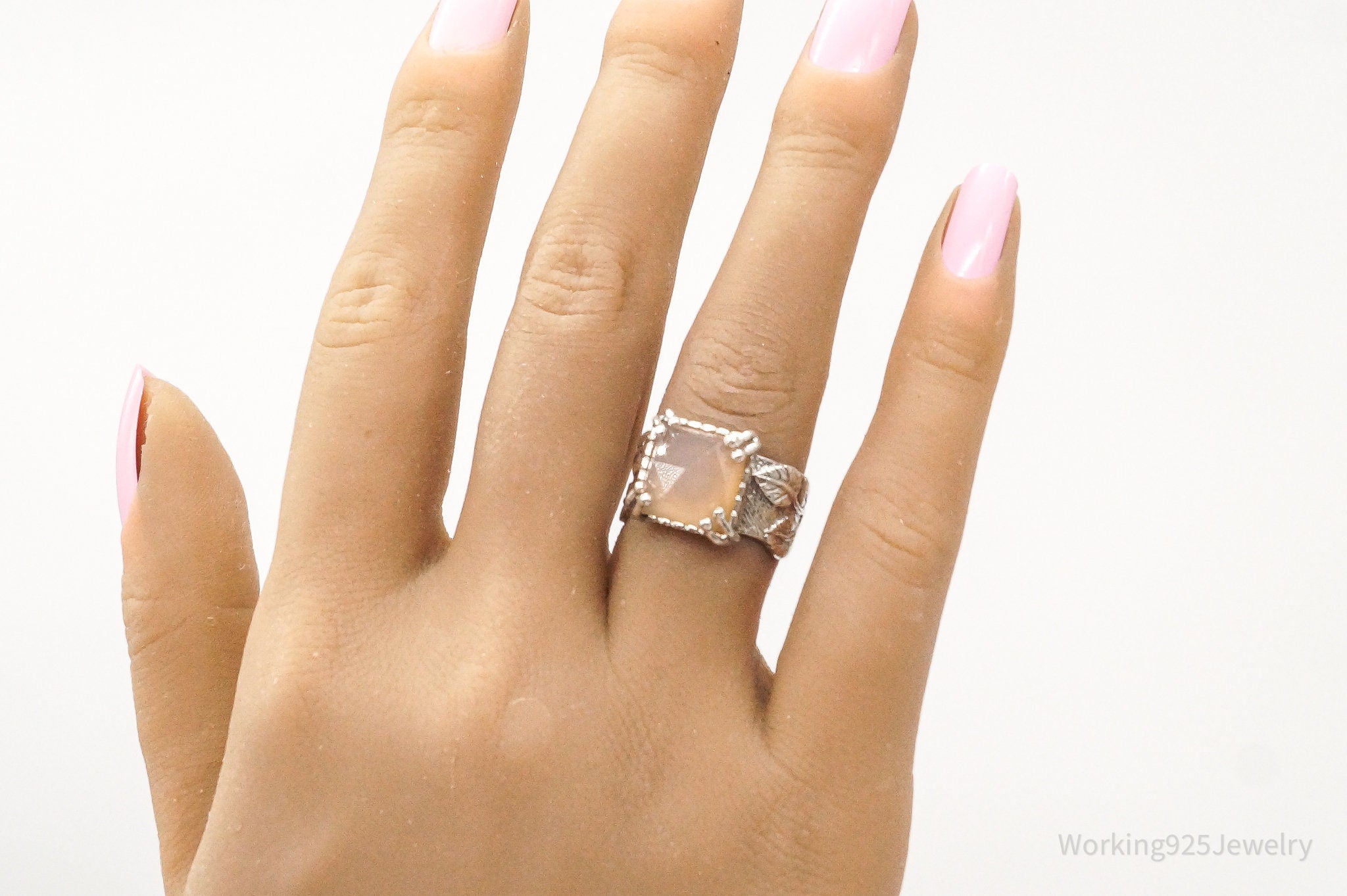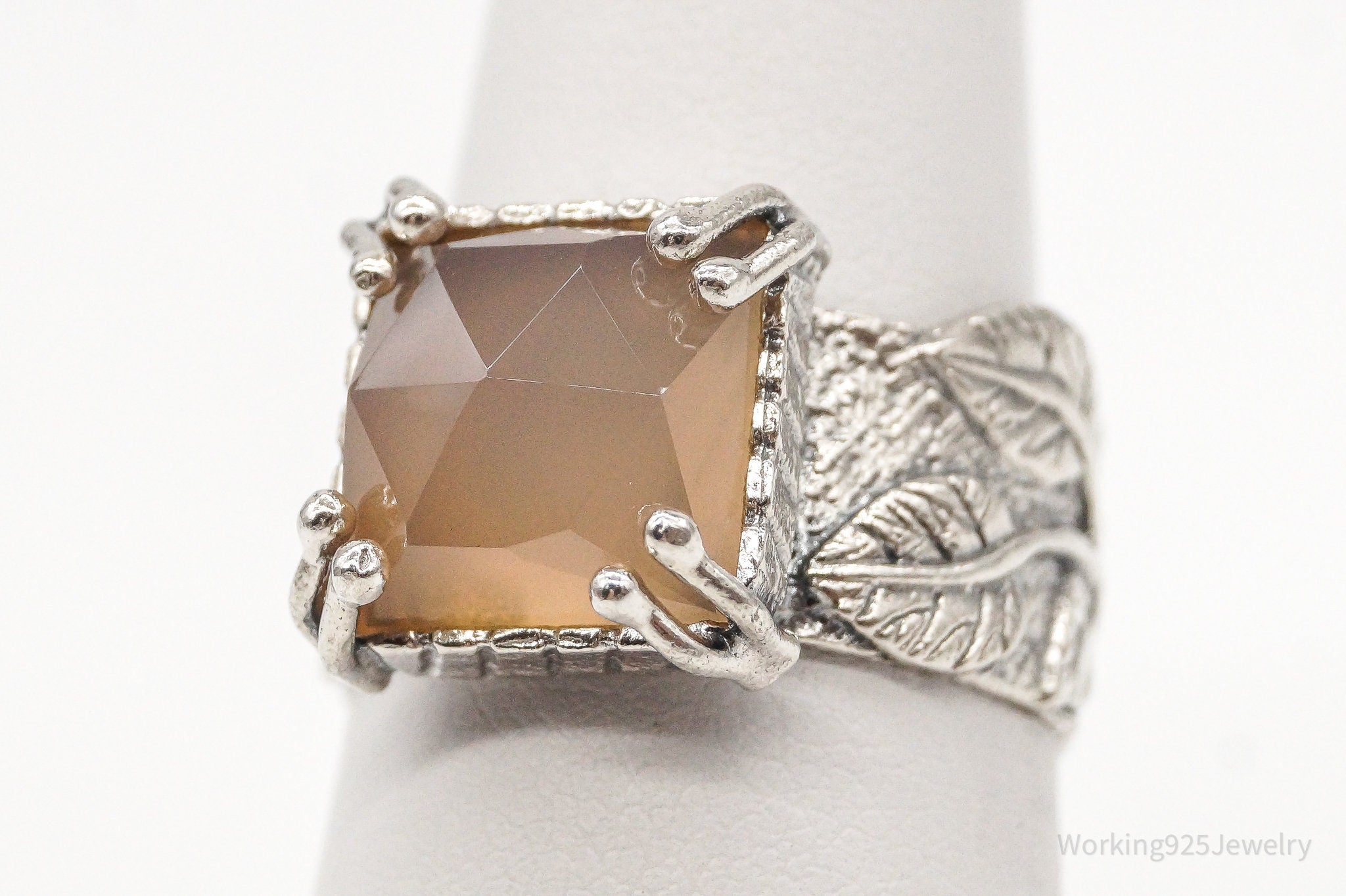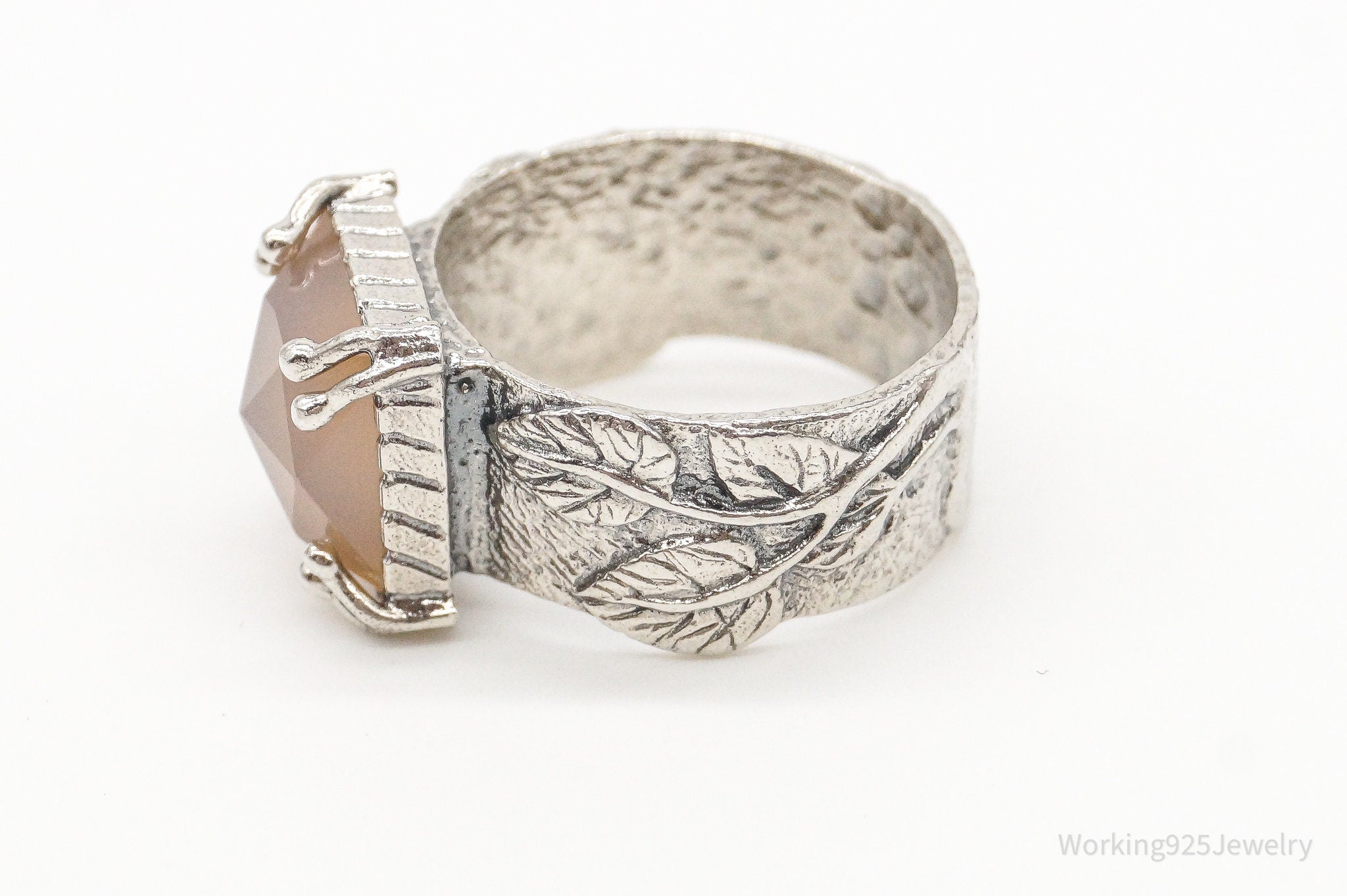 Designer Peach Chalcedony Leaves & Vines Sterling Silver Ring - Size 7.25