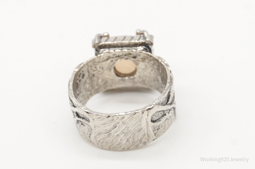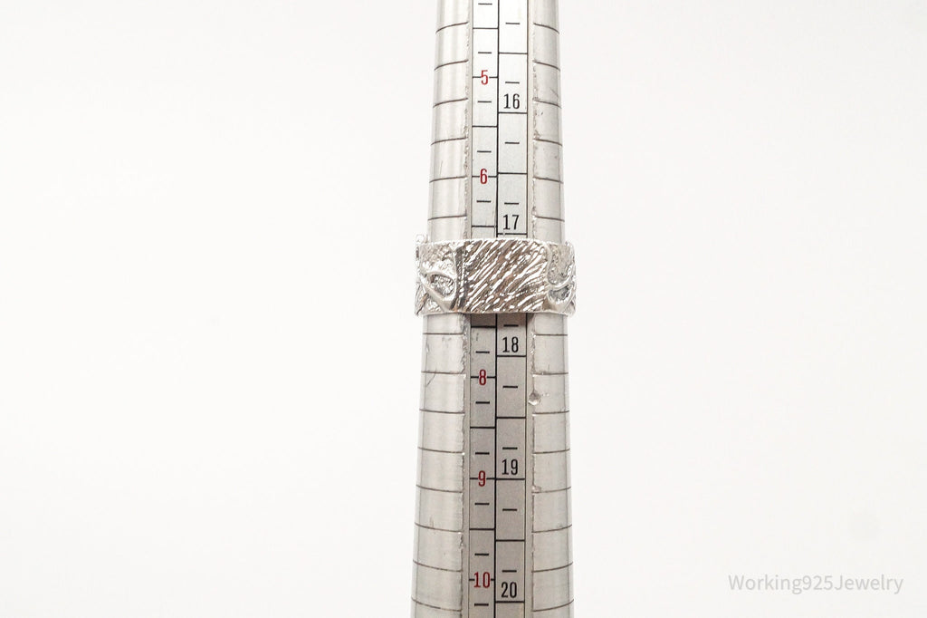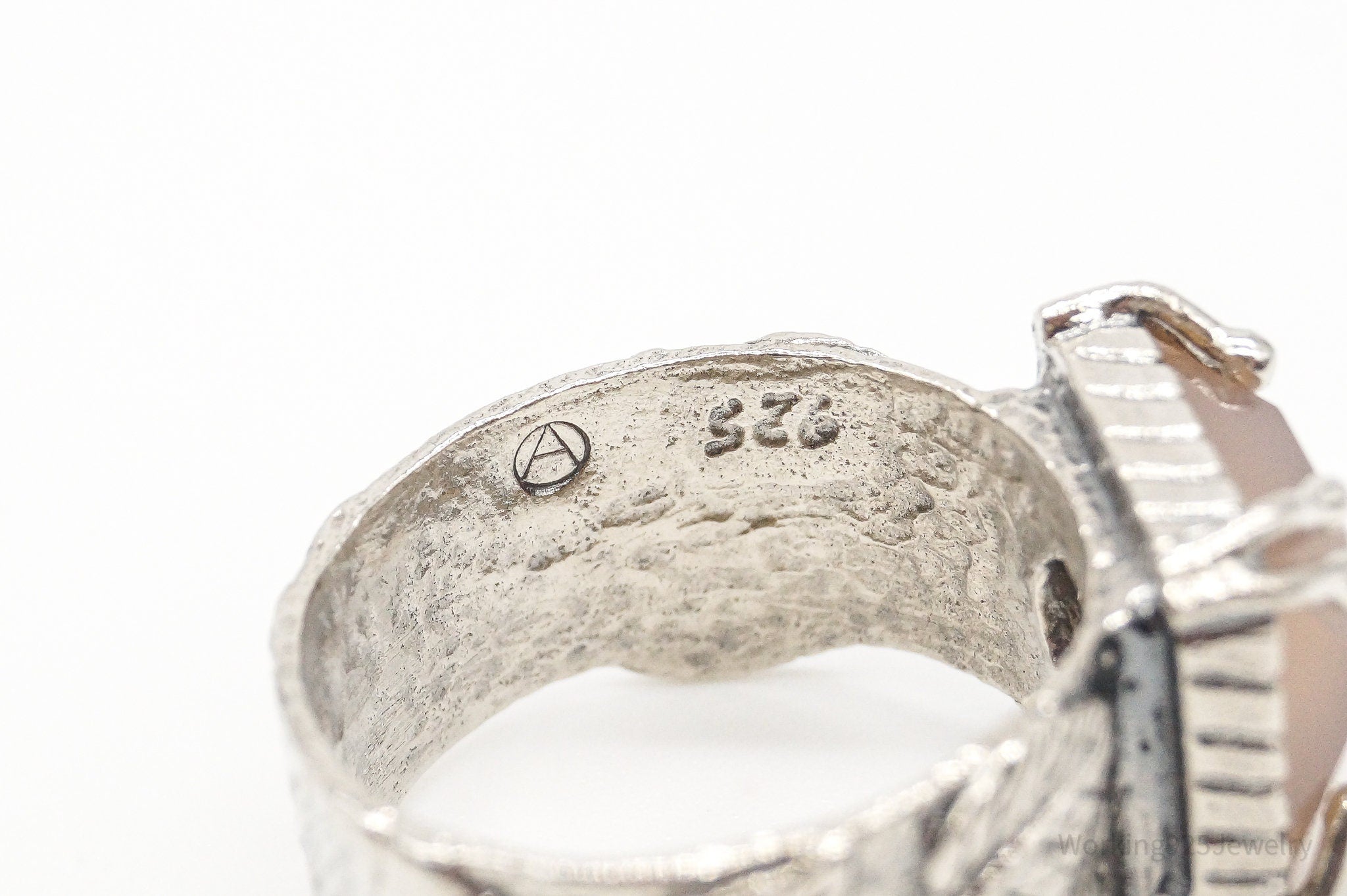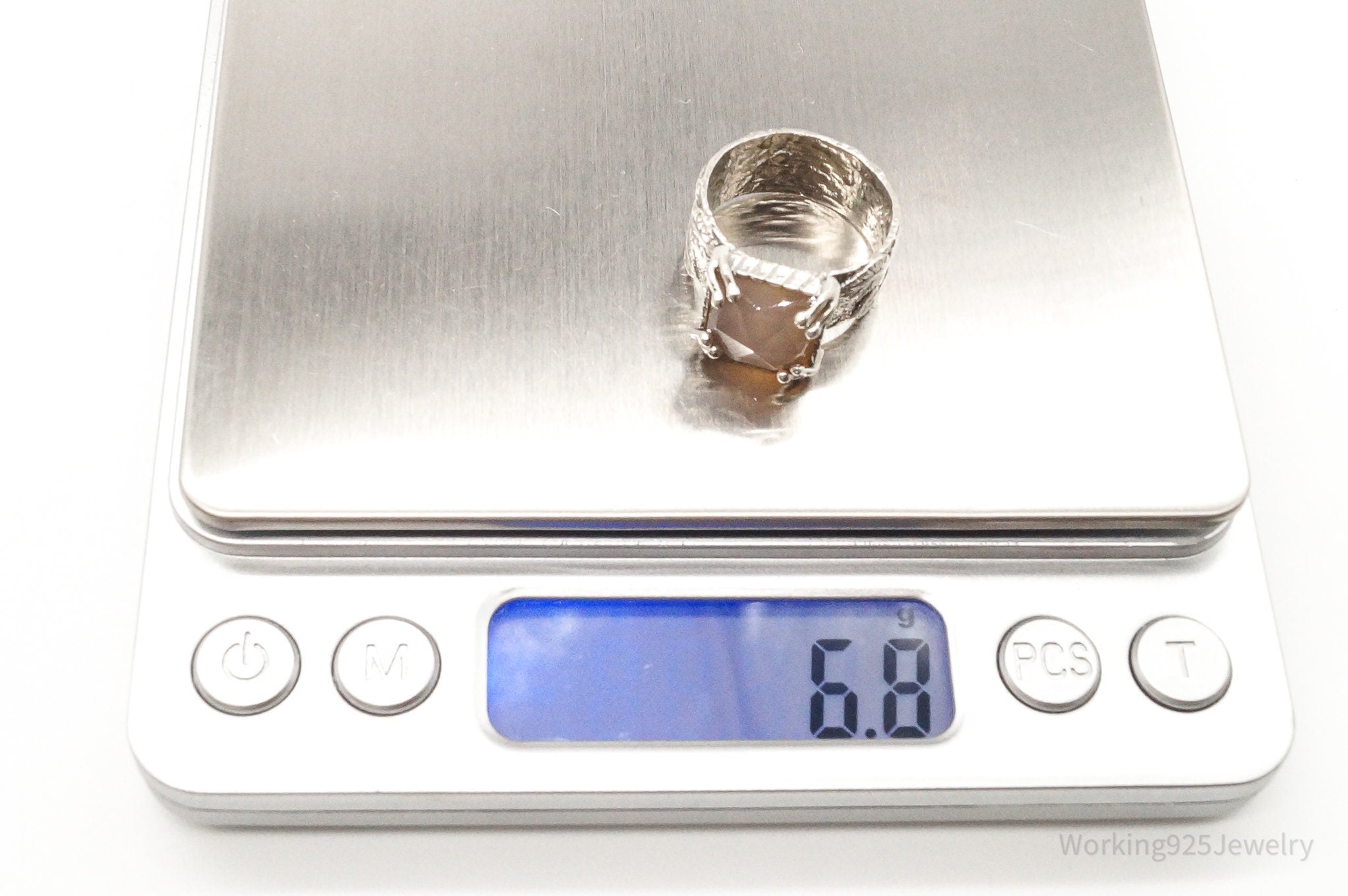 Designer Peach Chalcedony Leaves & Vines Sterling Silver Ring - Size 7.25