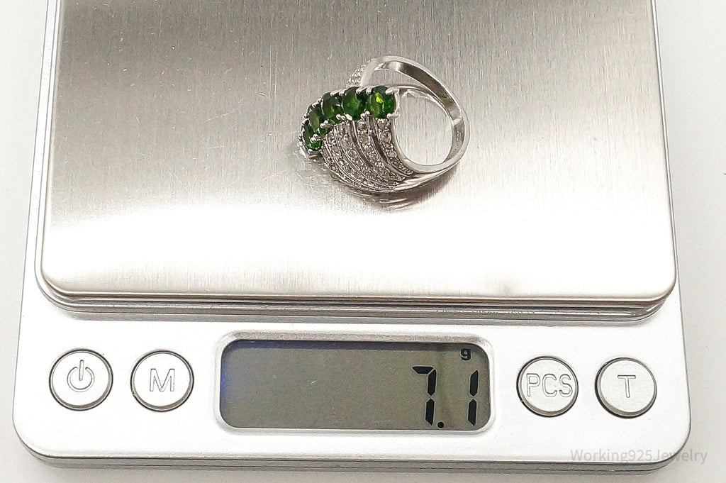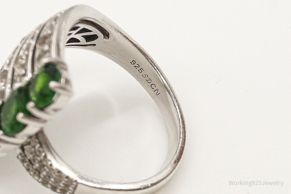 Designer Peridot Cubic Zirconia Sterling Silver Ring - Size 8.25