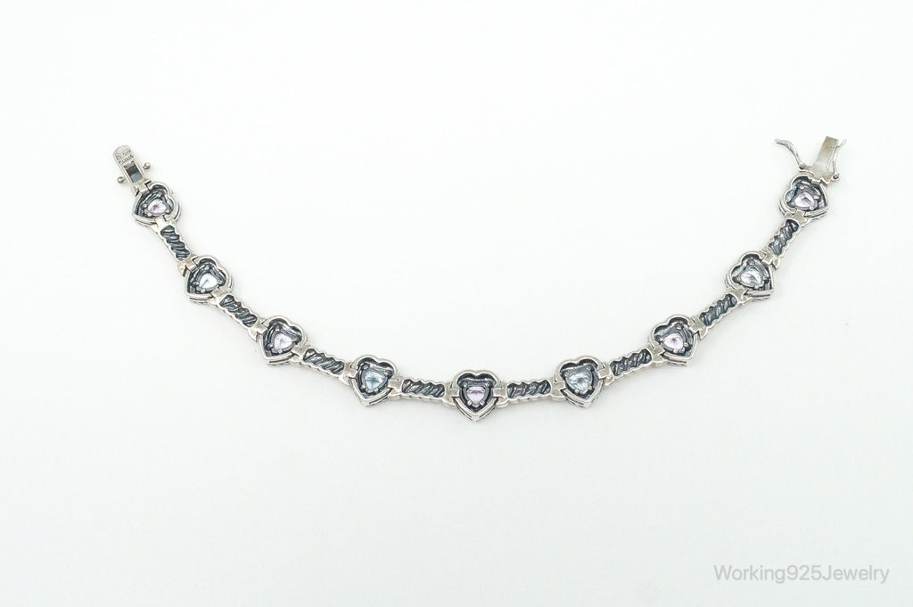 Designer Ross Simons Amethyst Blue Topaz Hearts Sterling Silver Bracelet