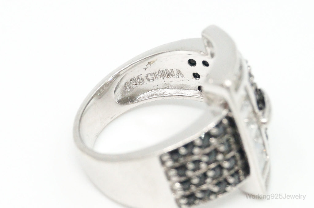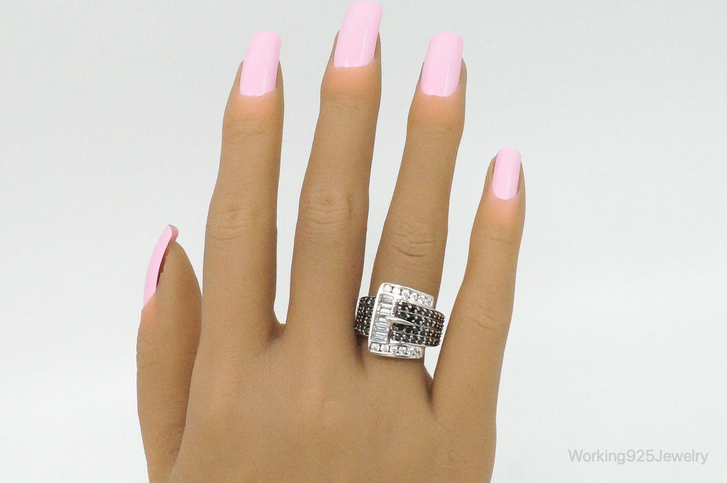 Designer Ross Simons Cubic Zirconia Black Onyx Sterling Silver Ring SZ 7.25