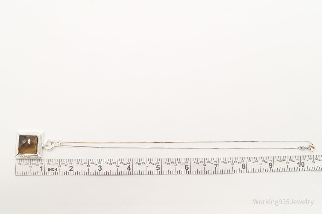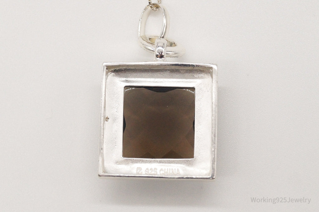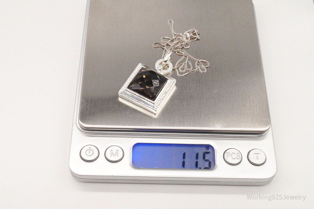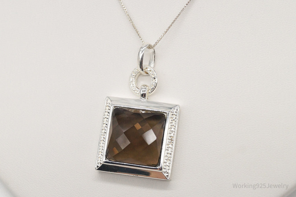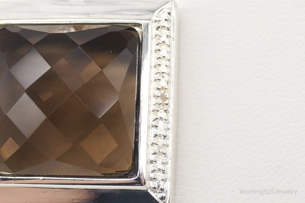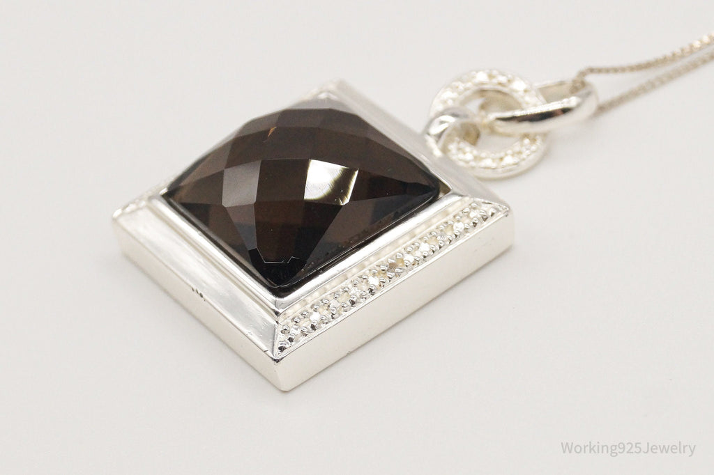 Designer Ross Simons Large Smoky Topaz Single Diamond Sterling Silver Necklace