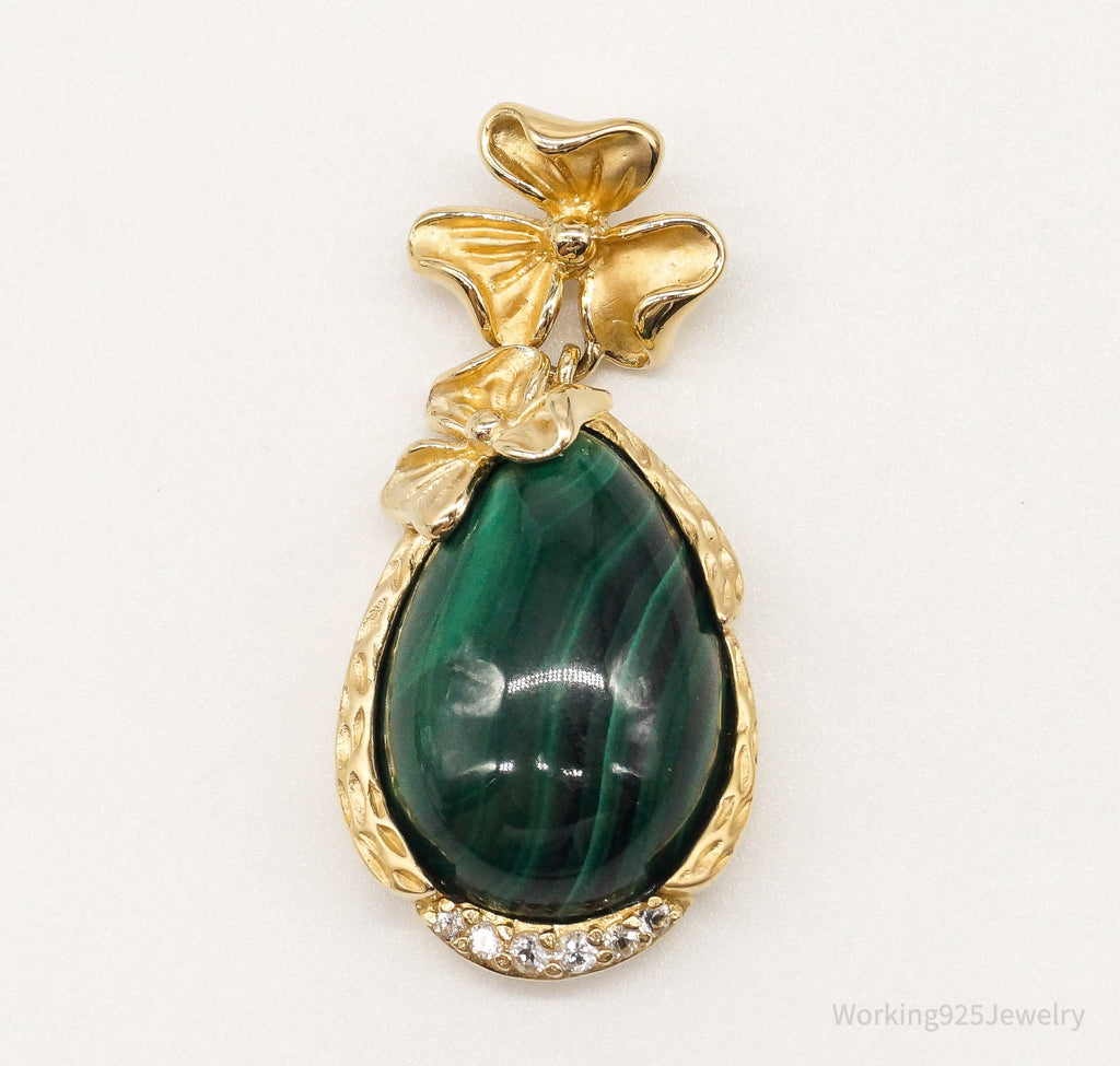 Designer Ross Simons Malachite Cubic Zirconia Gold Over Sterling Silver Pendant
