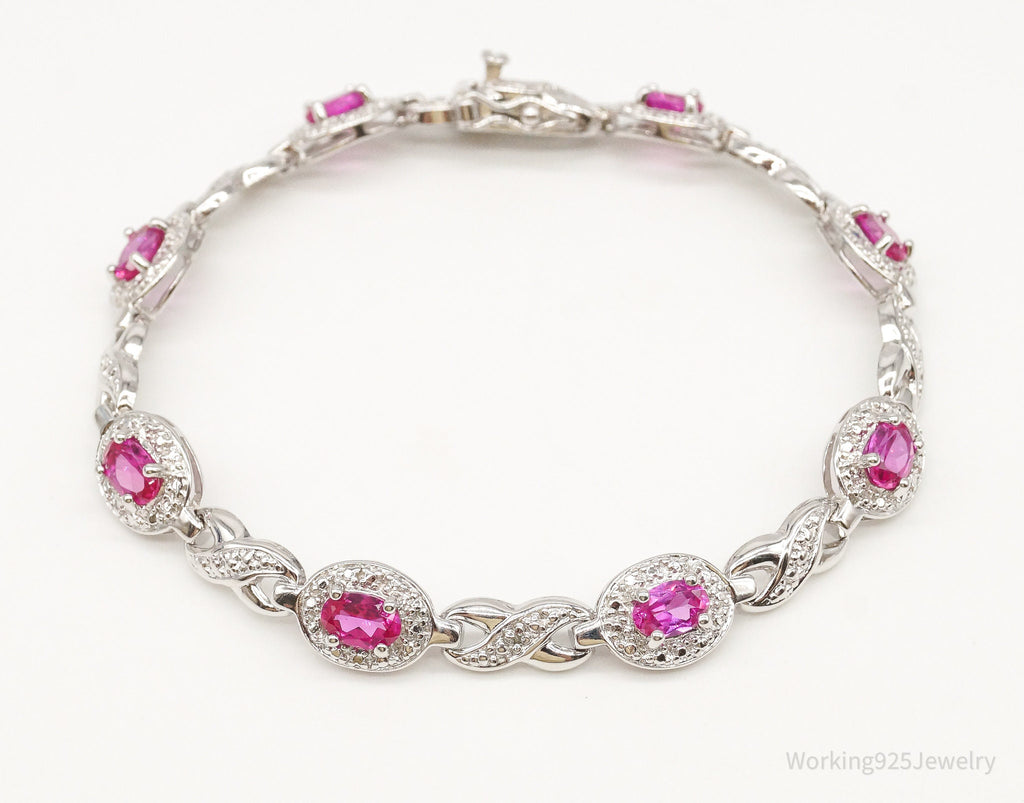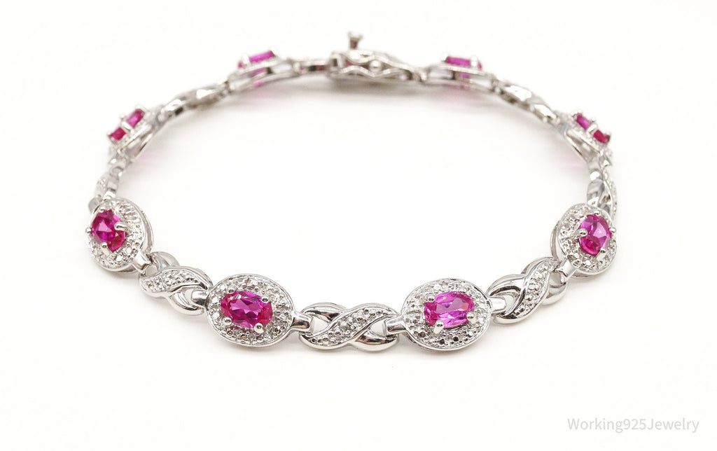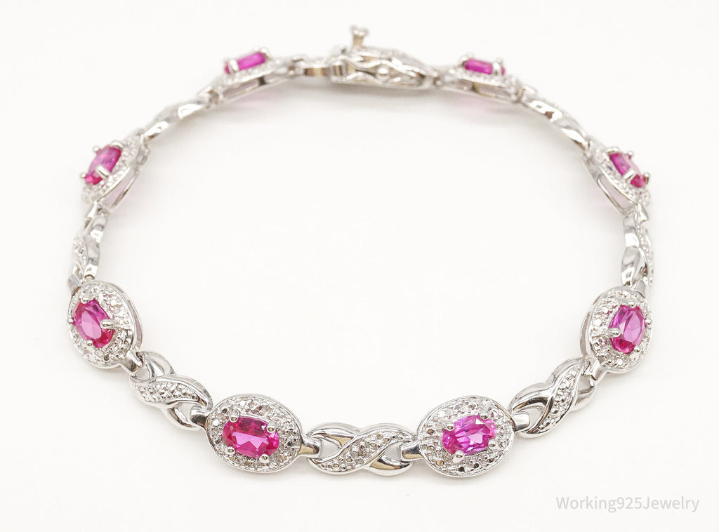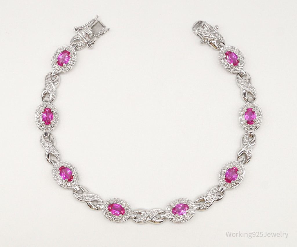 Designer Ross Simons Single Diamond Pink Topaz Sterling Silver Bracelet