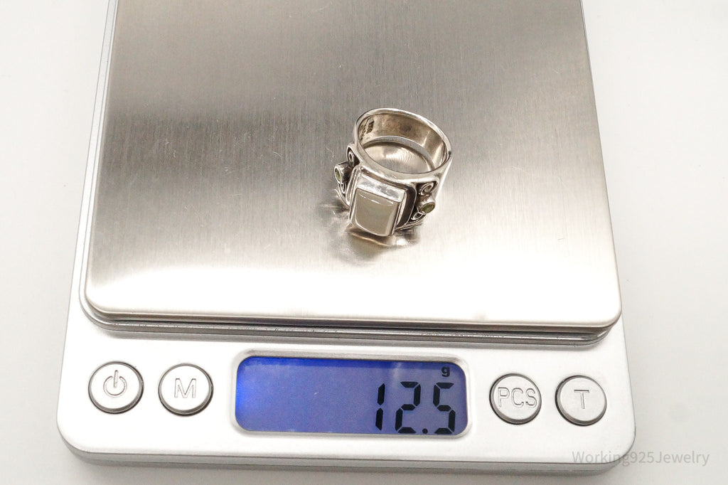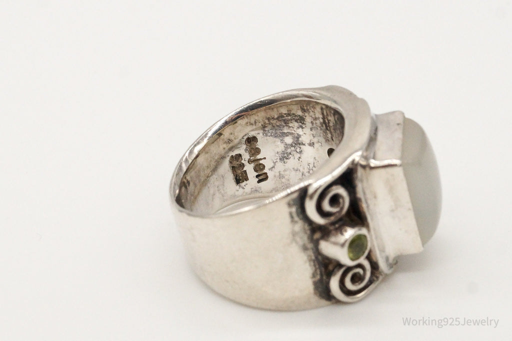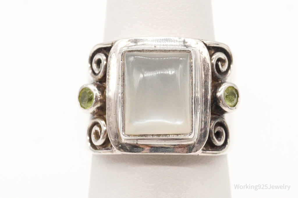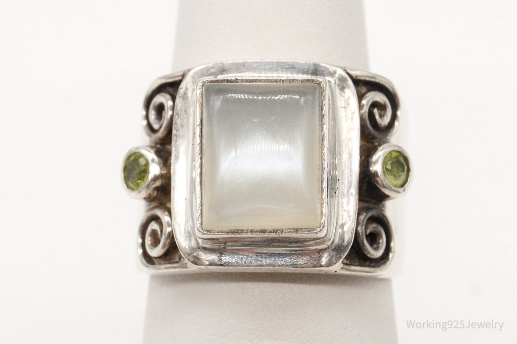 Designer Sajen Peridot Moonstone Sterling Silver Ring Size 6