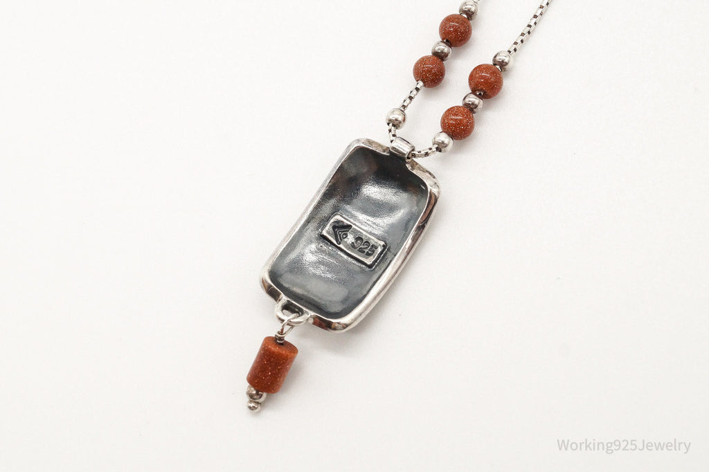 Designer Silpada Goldstone Hammered Sterling Silver Necklace