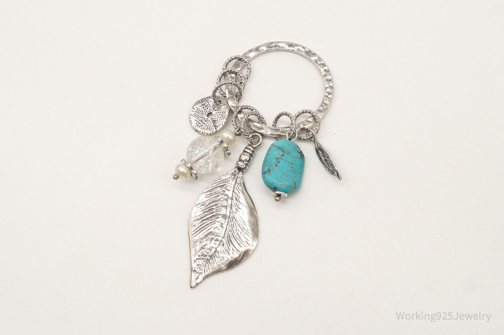 Designer Silpada Leaves Turquoise Quartz Charms Sterling Silver Pendant