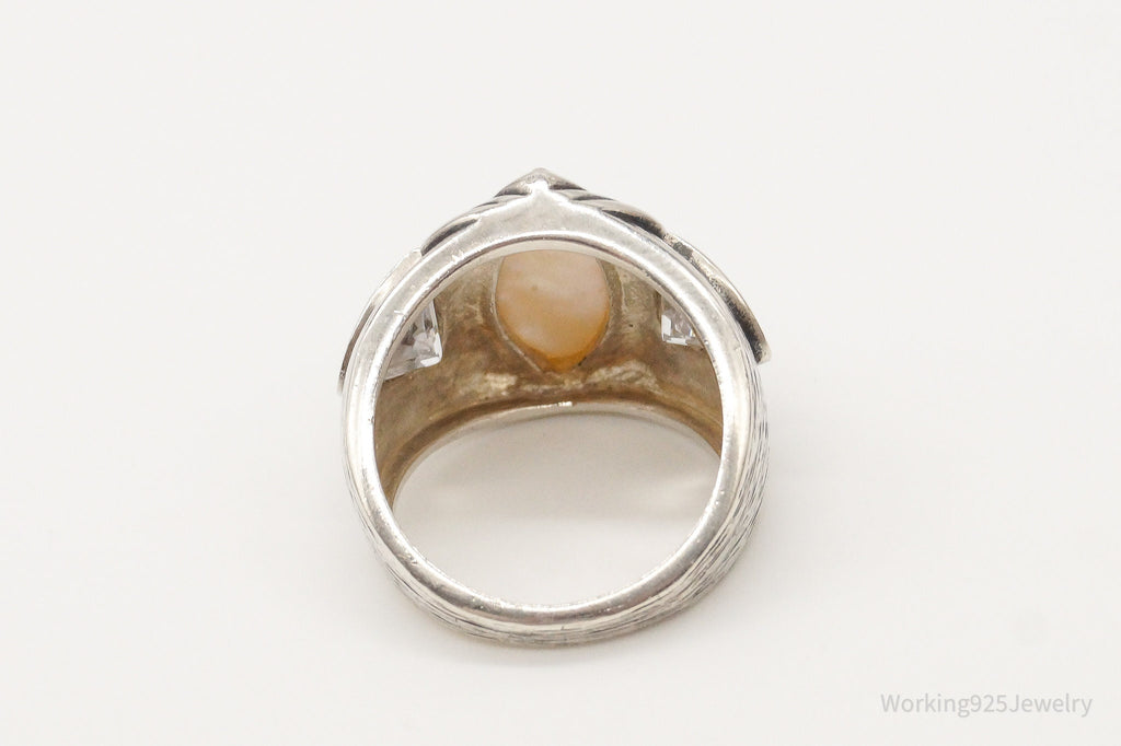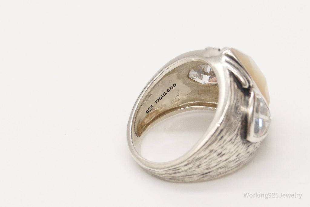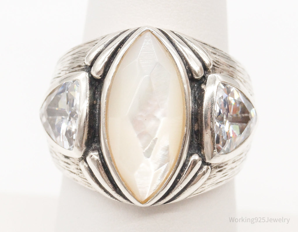 Designer Silpada Mother Of Pearl Cubic Zirconia Sterling Silver Ring Size 7.25