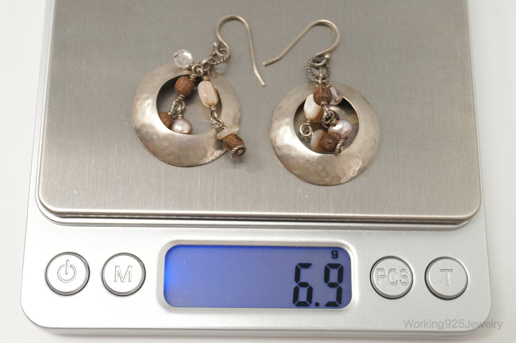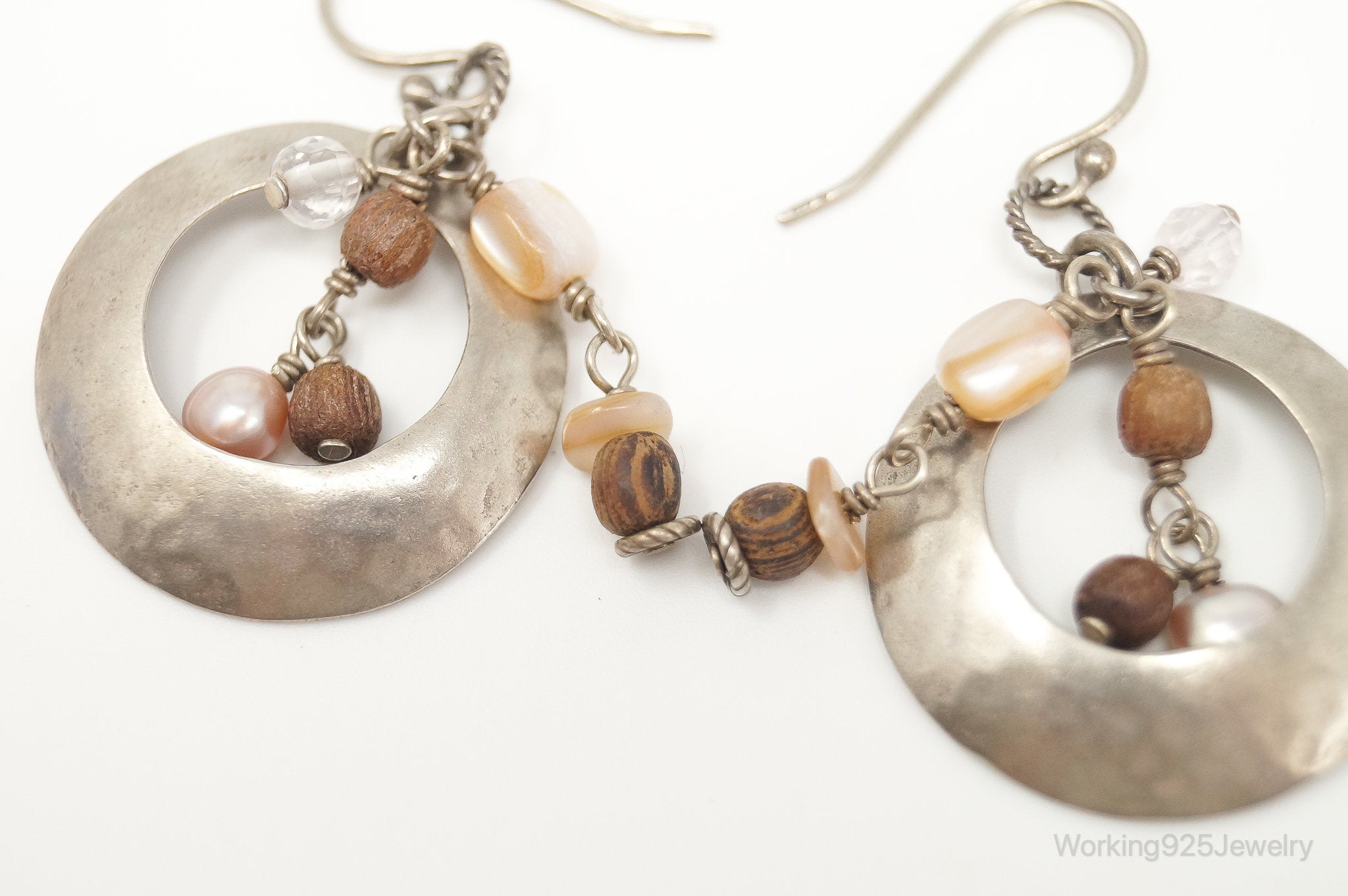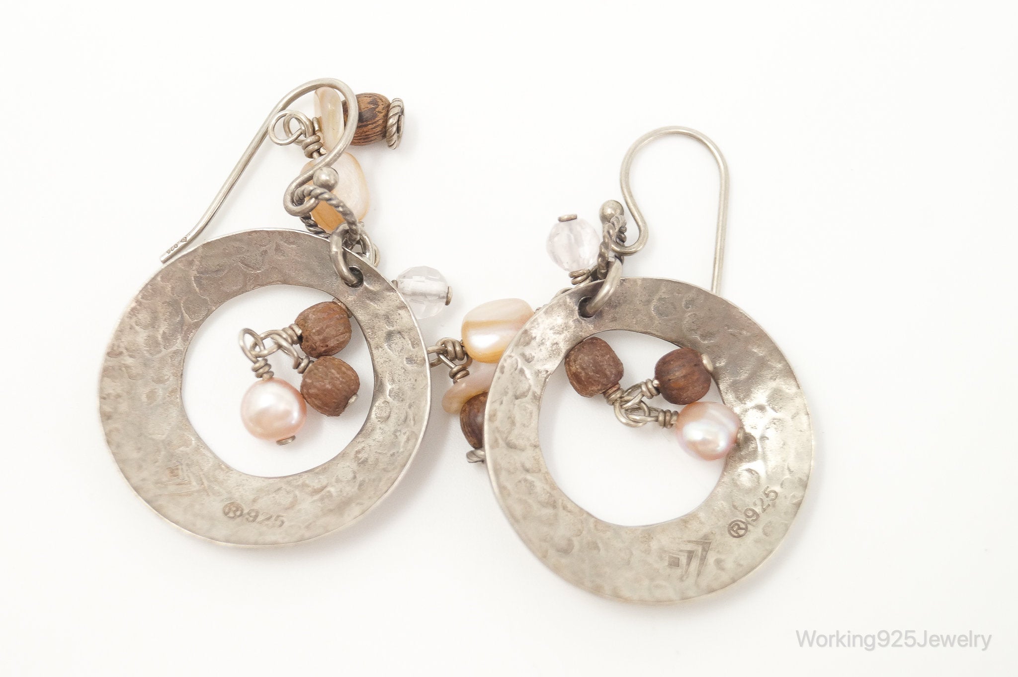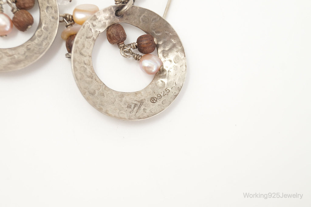 Designer Silpada Wood Quartz Pearl Hammered Sterling Silver Earrings