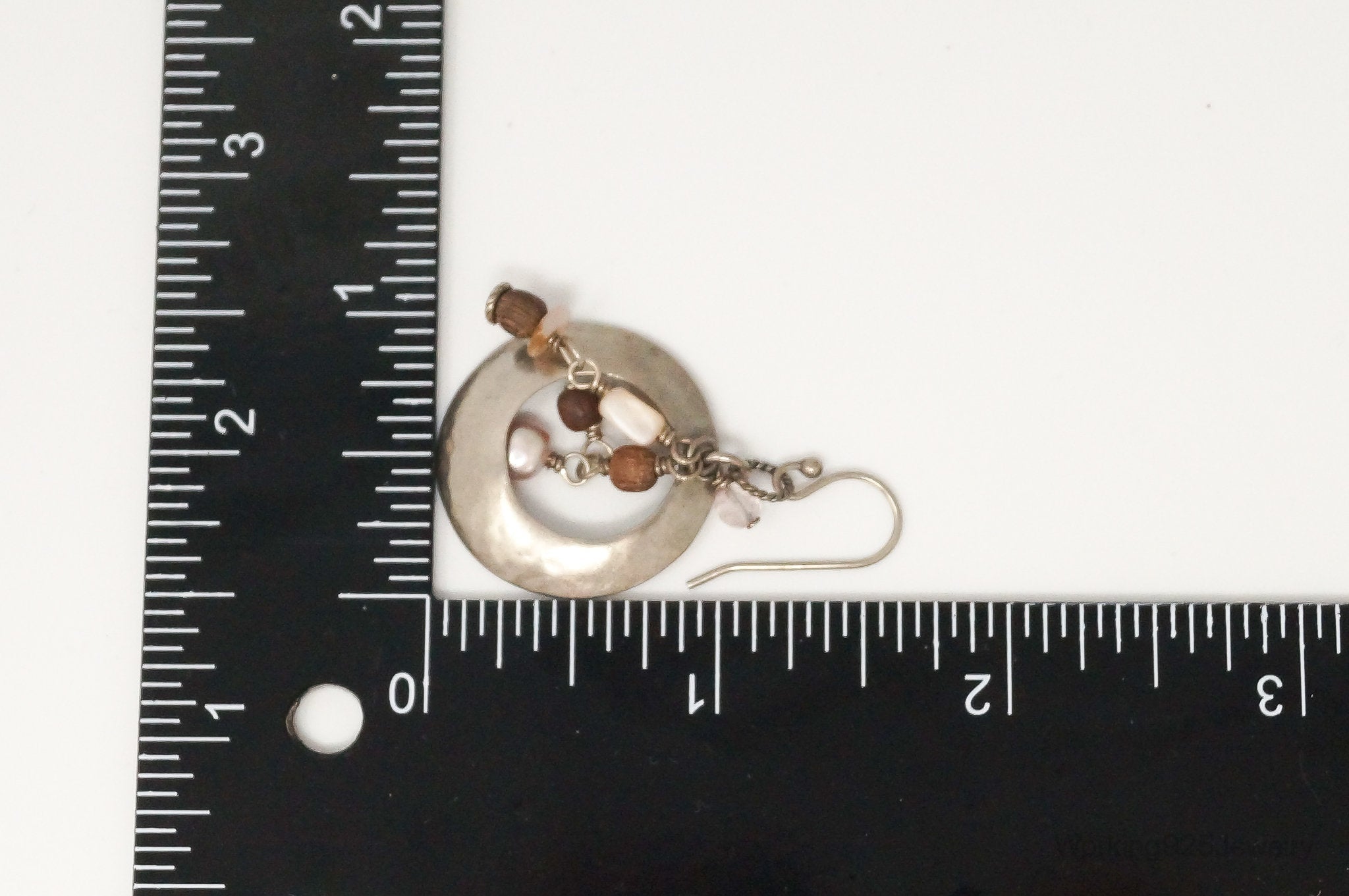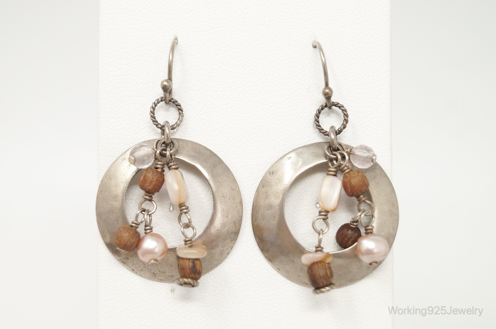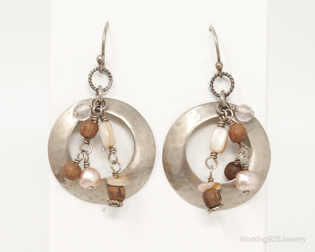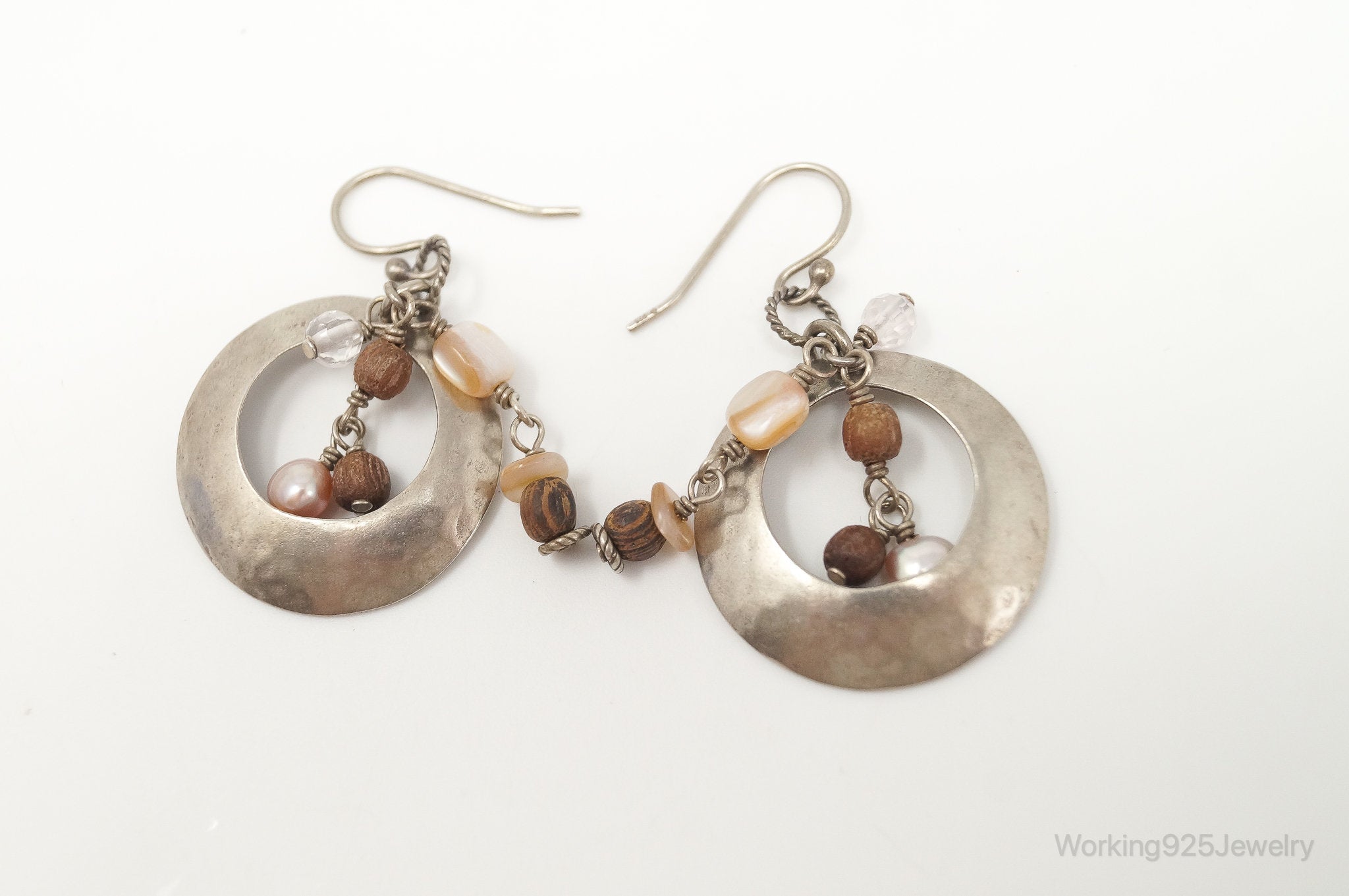 Designer Silpada Wood Quartz Pearl Hammered Sterling Silver Earrings