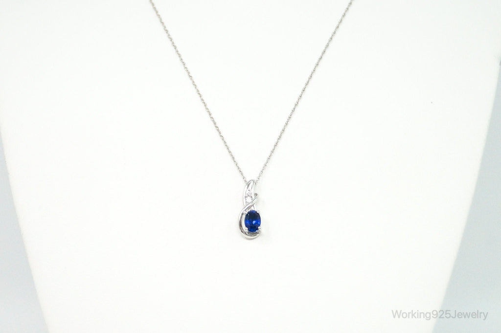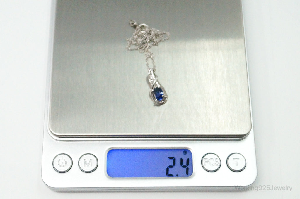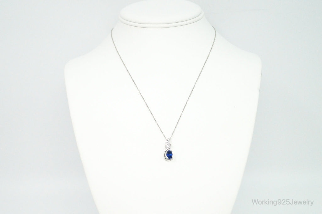 Designer SUN Lab Sapphire Cubic Zirconia Sterling Silver Necklace