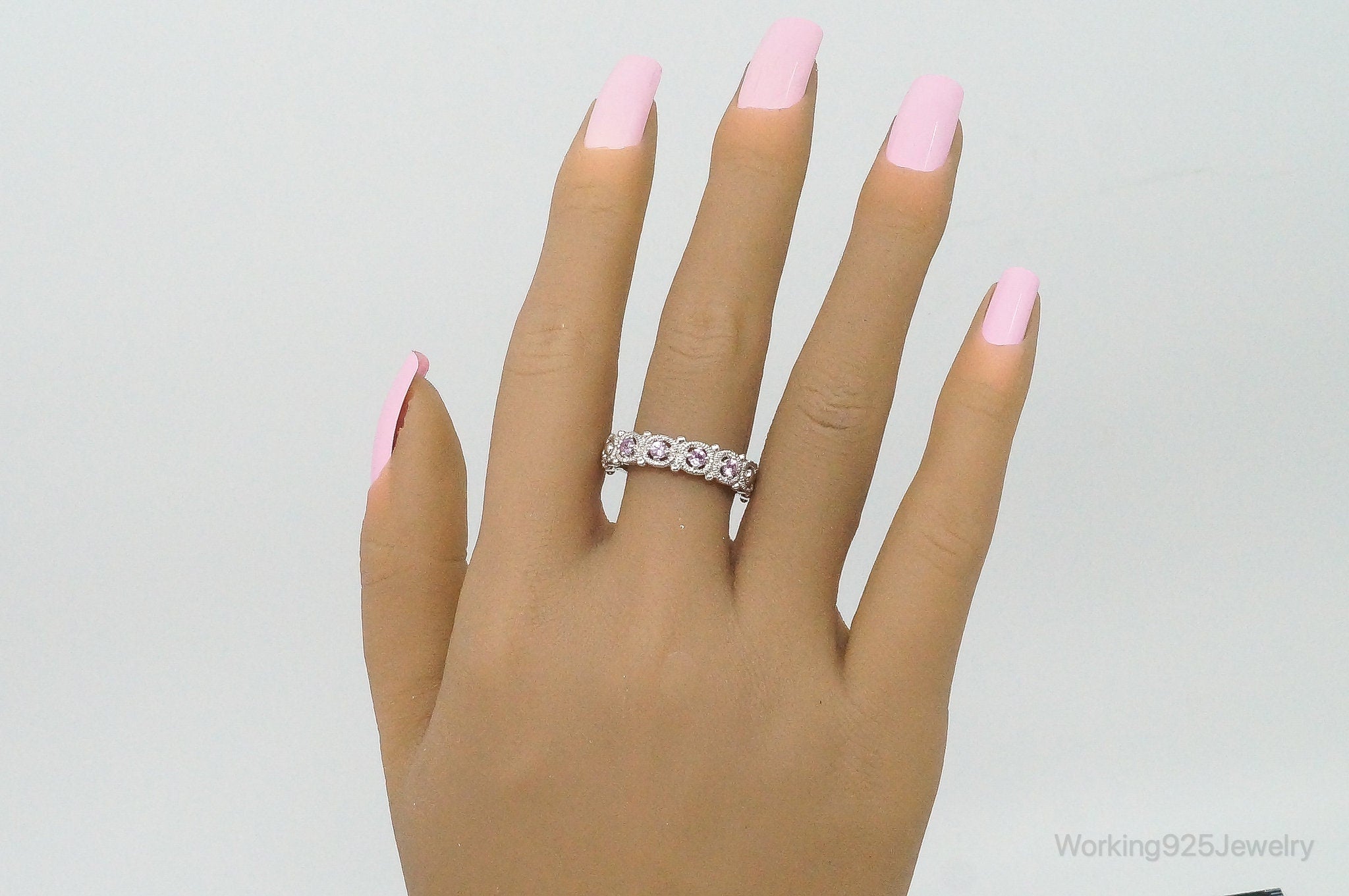 Designer SVI Pink Cubic Zirconia Sterling Silver Ring Size 10