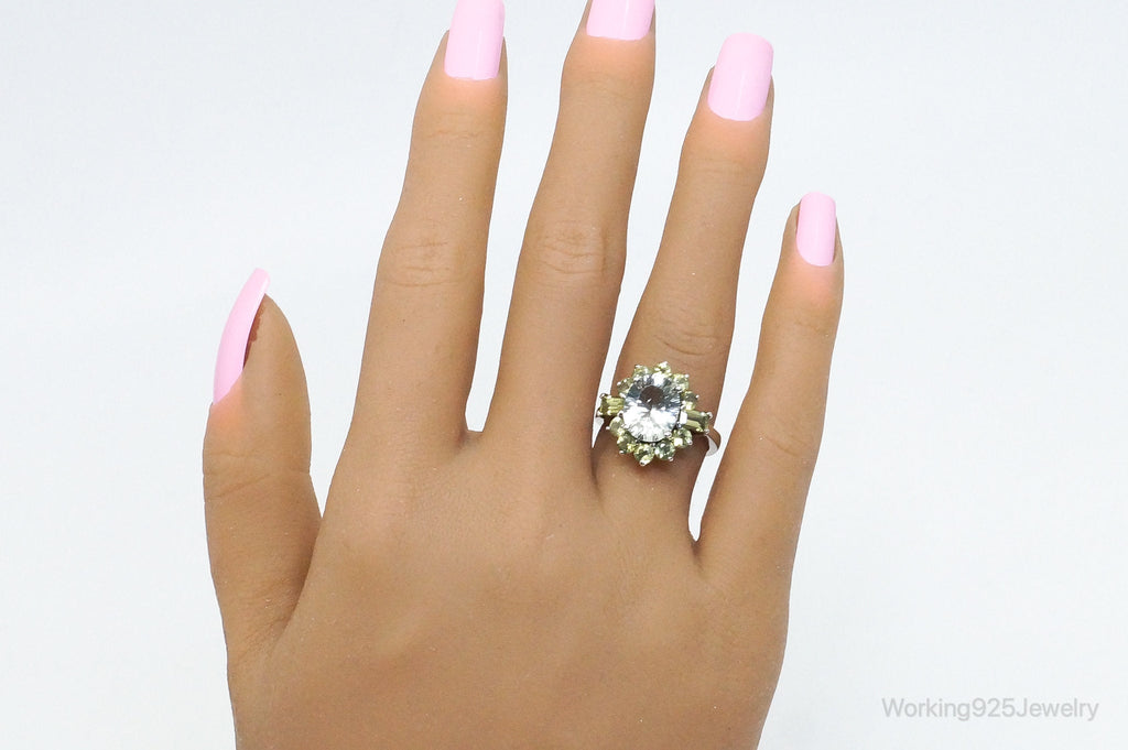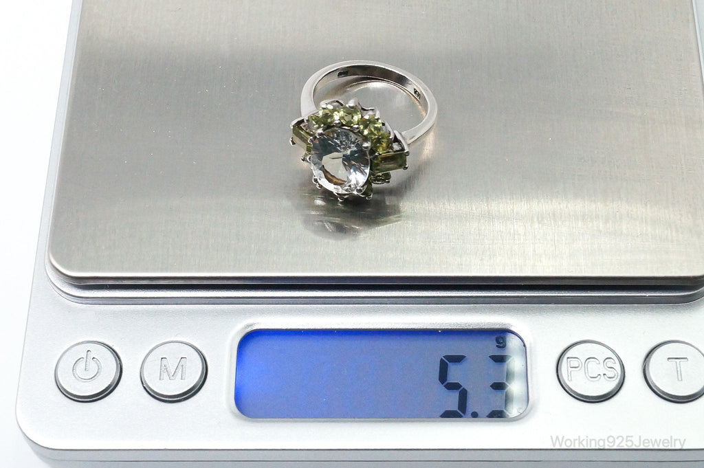 Designer TJC Pale Blue Cubic Zirconia Peridot Sterling Silver Ring - SZ 7