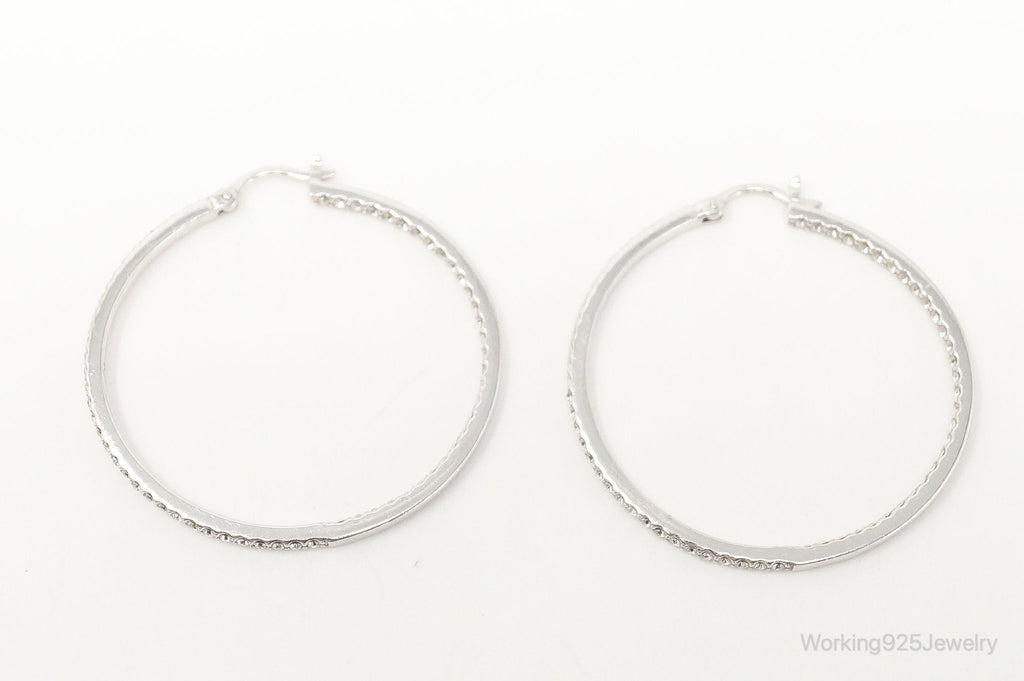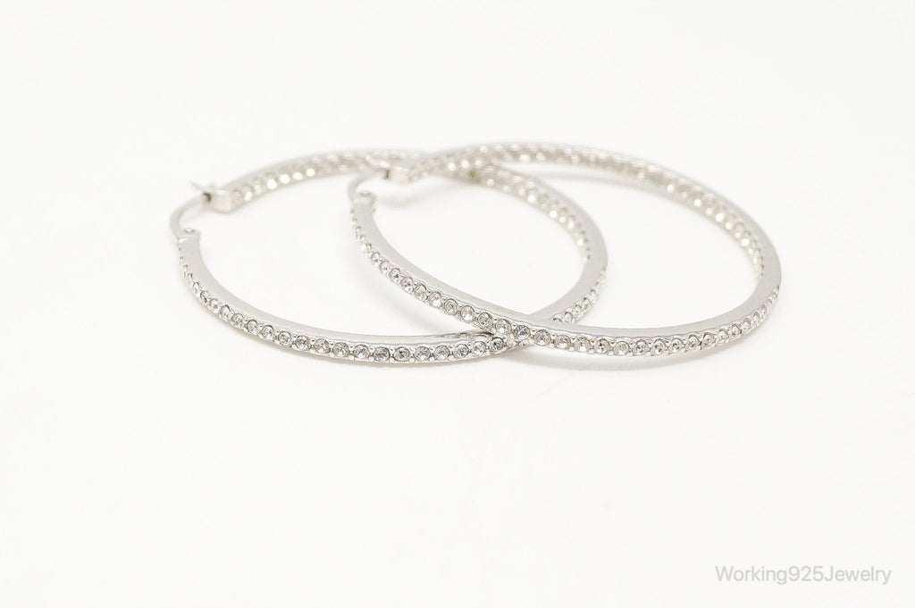 Designer VO Cubic Zirconia Sterling Silver Hoop Earrings