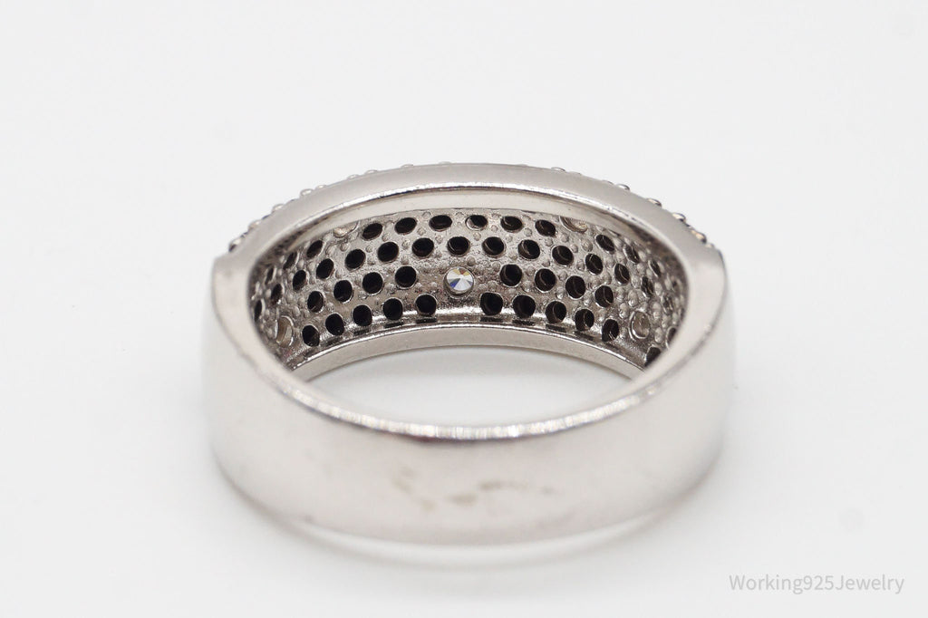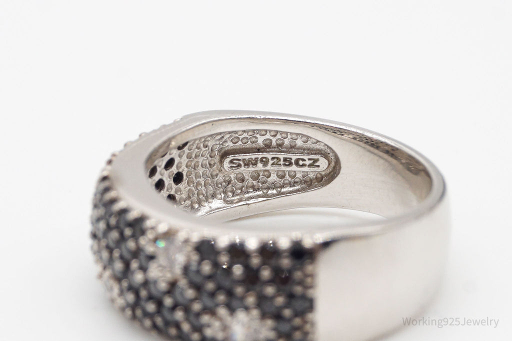 Designer White & Black Cubic Zirconia Sterling Silver Ring Size 6.75