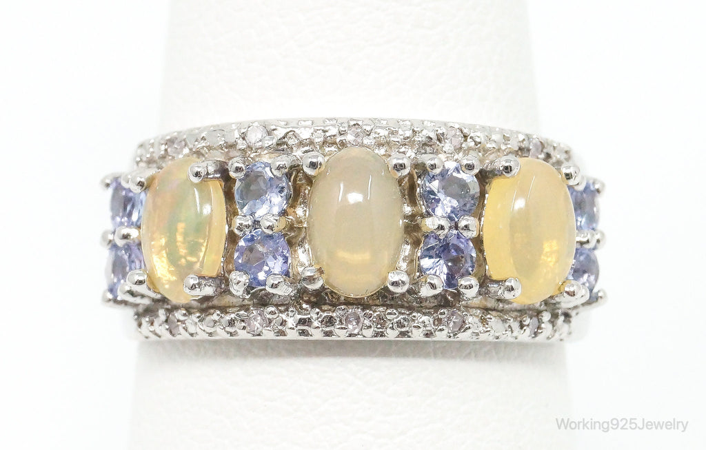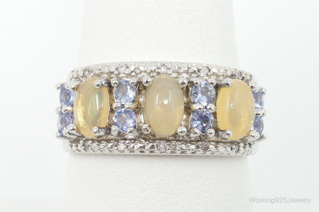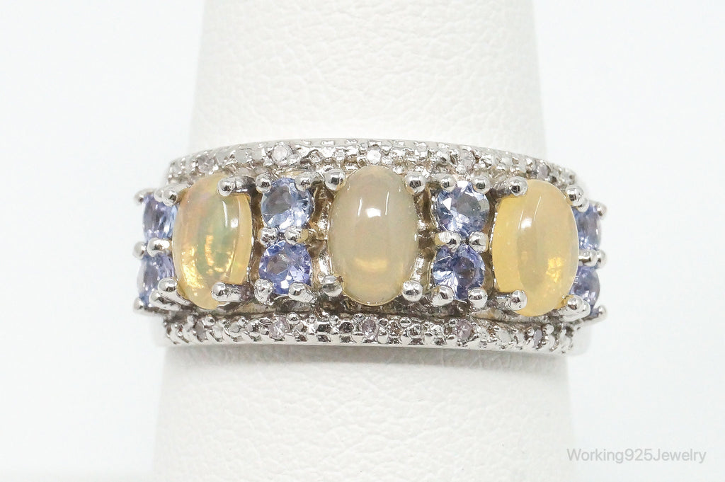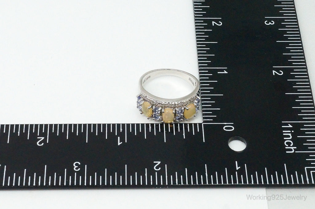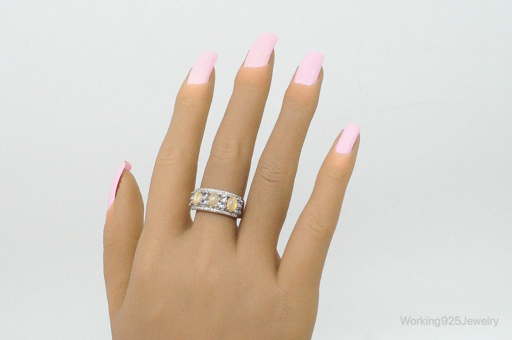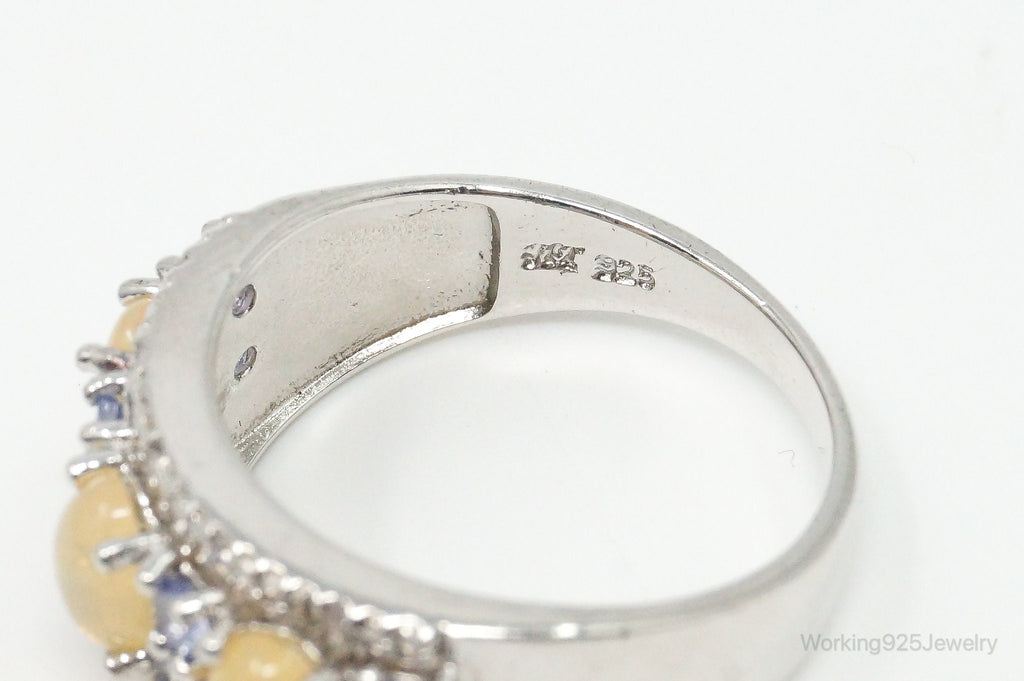 Designer Yellow Opalite Iolite Cubic Zirconia Sterling Silver Ring Size 8