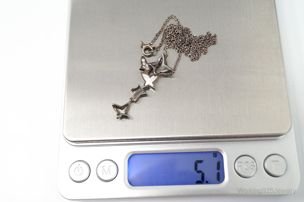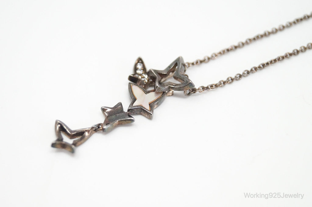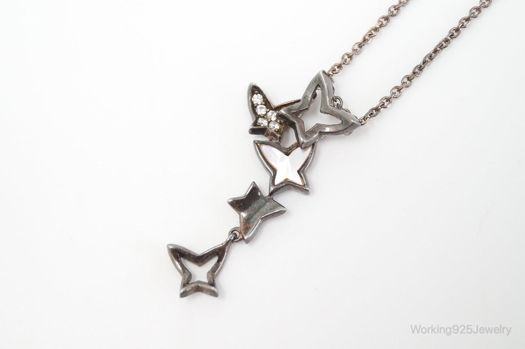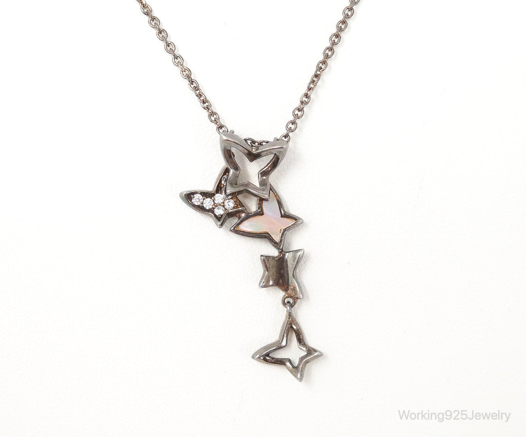 Folli Follie Mother Of Pearl Cubic Zirconia Butterflies Sterling Silver Necklace
