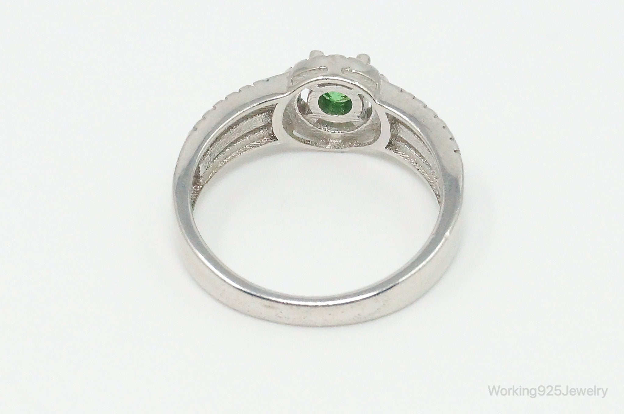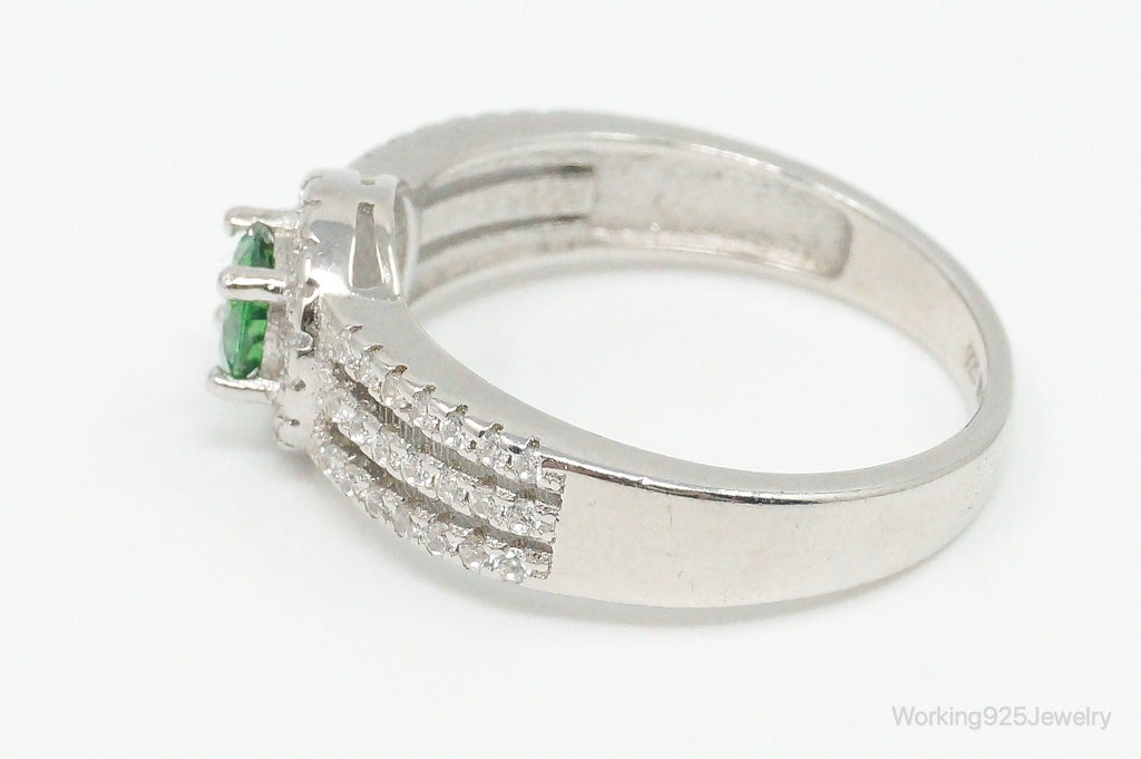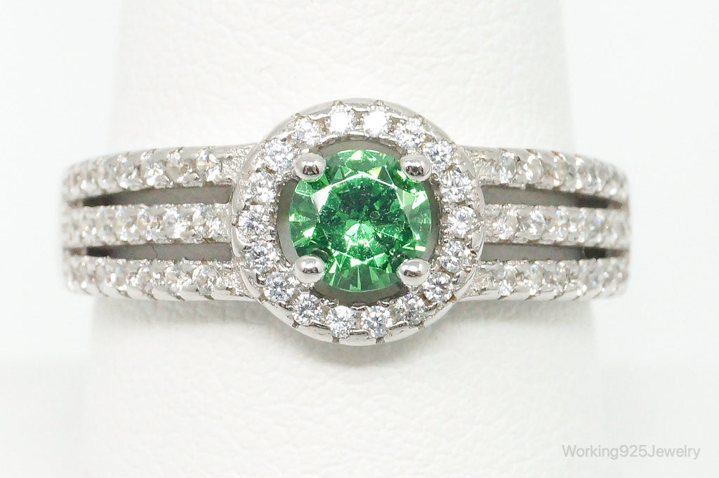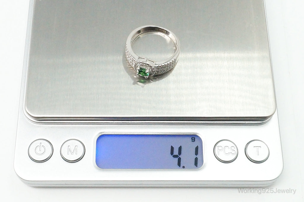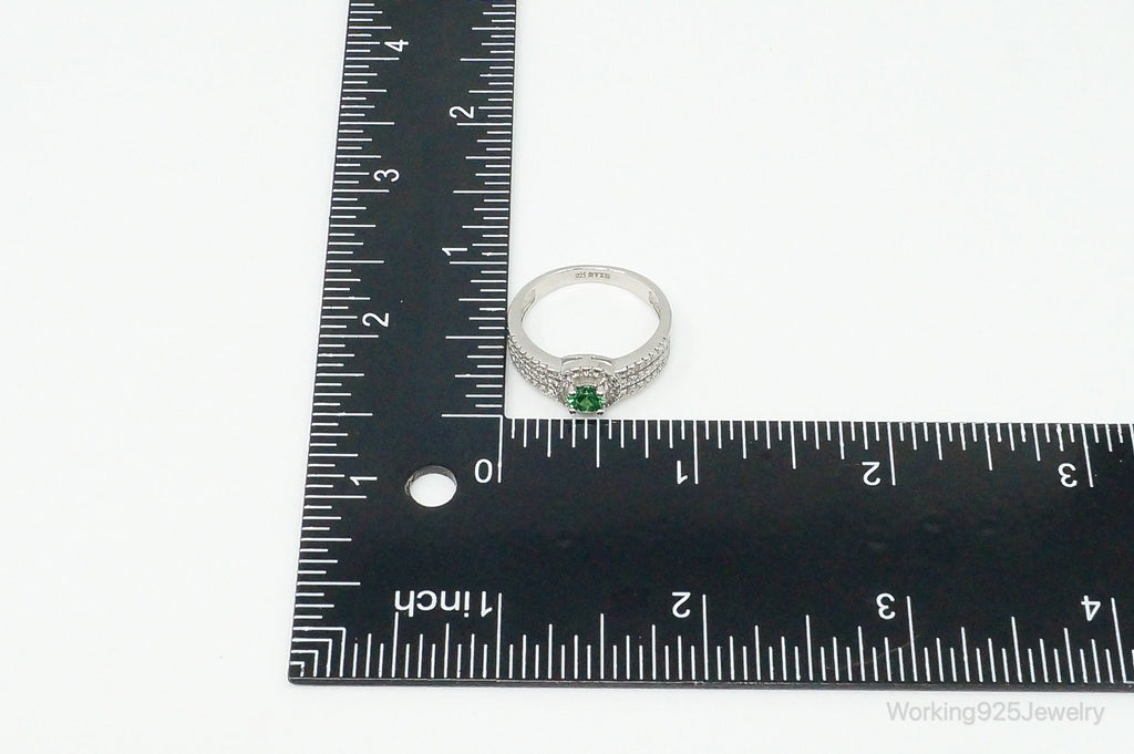 Green Cubic Zirconia Sterling Silver Ring - Size 8.75